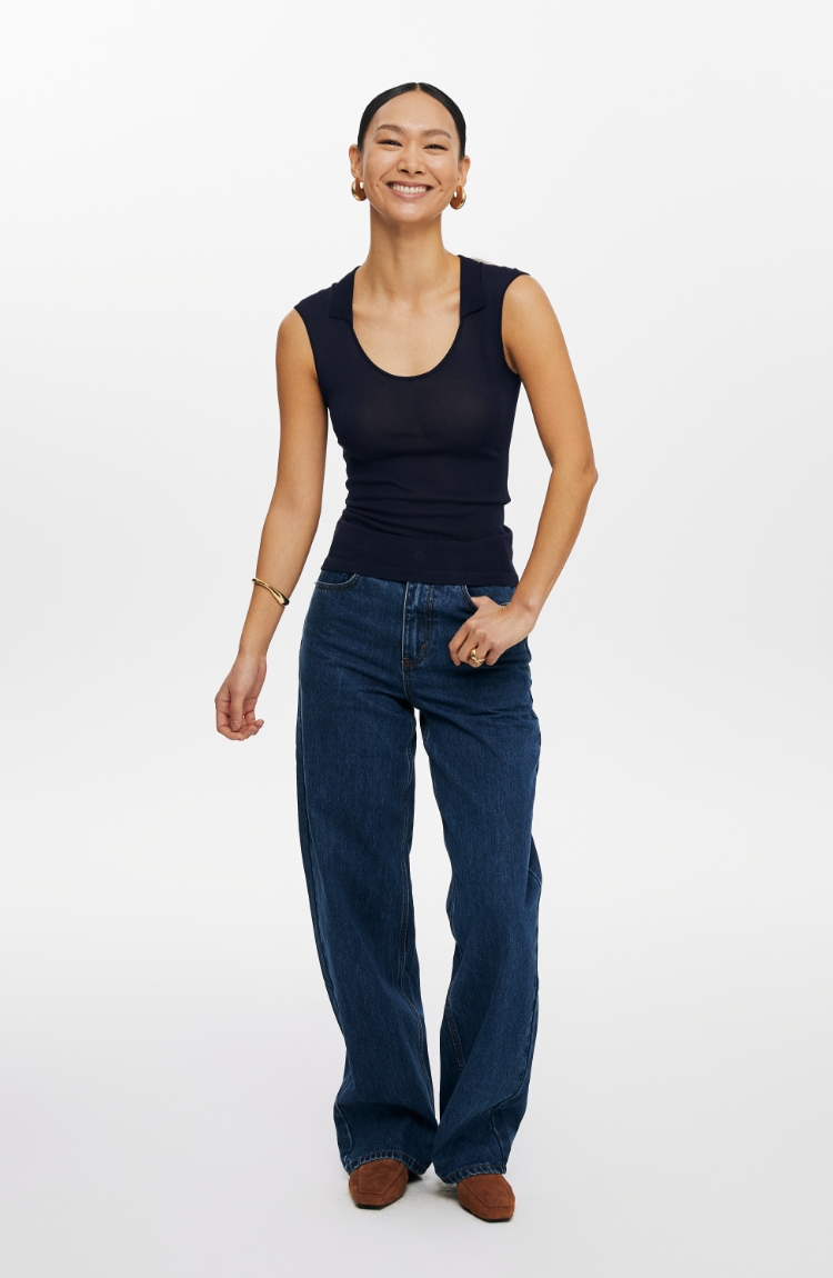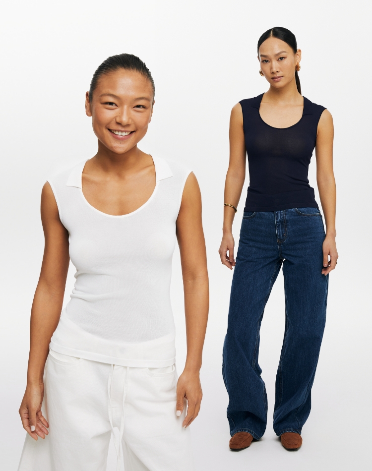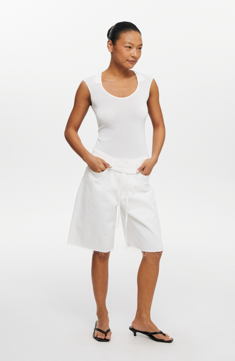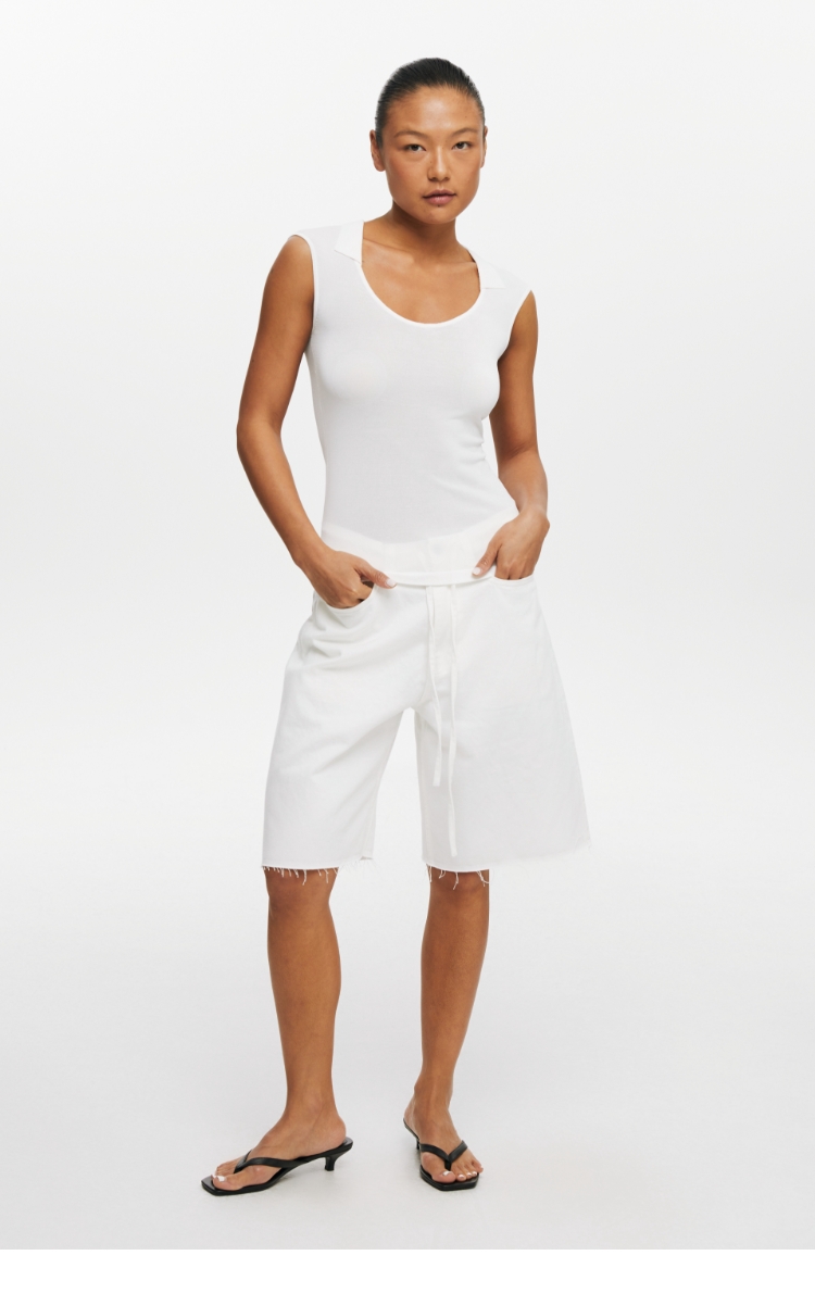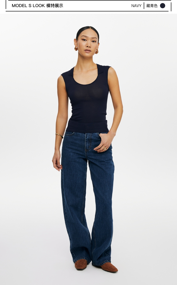 oneup弹力U型翻领针织背心