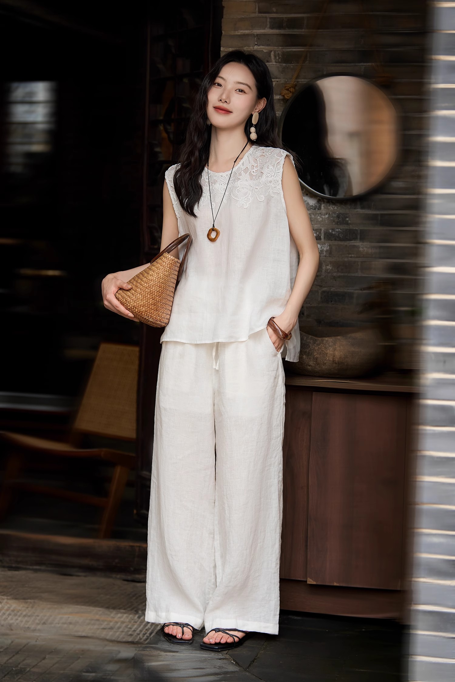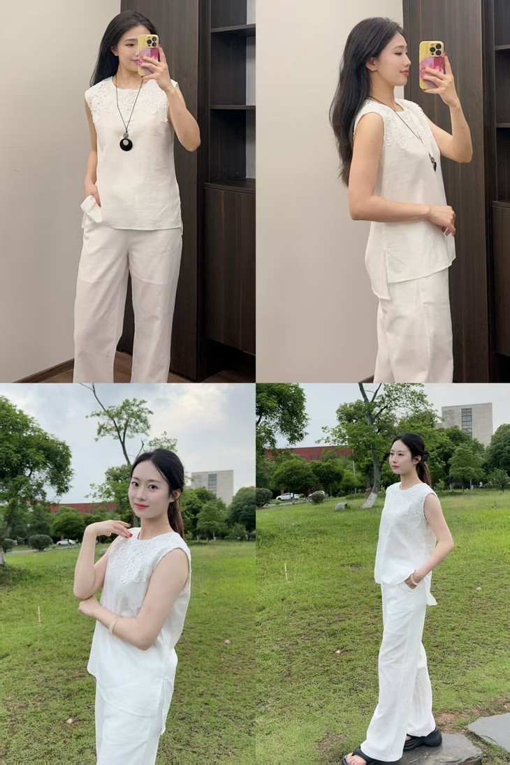 姹弥Charming·重工蕾丝亚麻套装,素净雅致,简约透气【G】