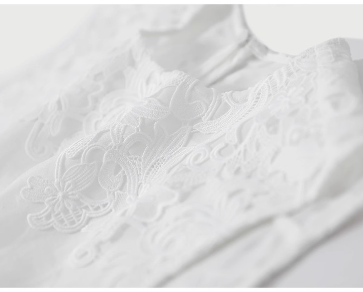 蕾丝绣花特别精致!细密的针脚绣出花纹线条流畅又好看,就像把小花园穿在身上一样~
