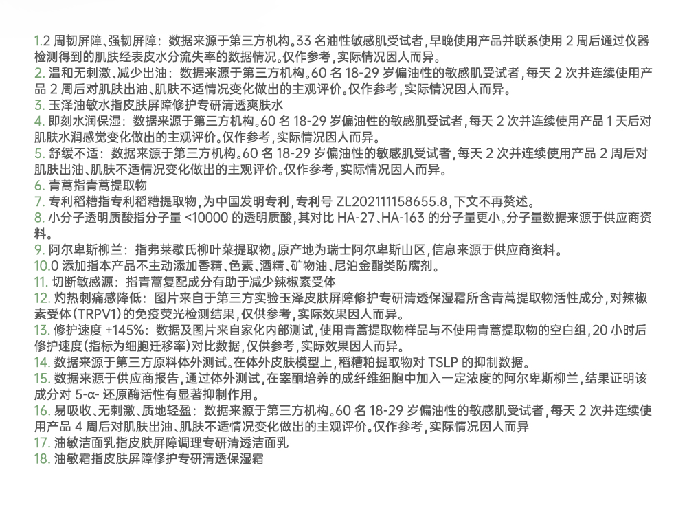玉泽皮肤屏障修护水乳套装舒敏补水修复敏感肌