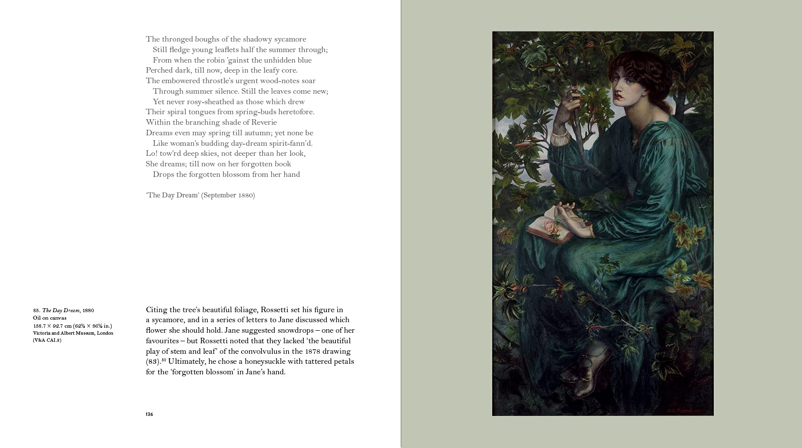 罗塞蒂通过他对主题的热情定义了他的经历,这本书追溯了他对艺术和生活的刻意交织。他的模特,如简·莫里斯、伊丽莎白·西达尔和他的妹妹克里斯蒂娜,是他的灵感来源,在他拒绝传统美的过程中,他将差异重新定义为可取的。通过他对女性的看法,罗塞蒂以一种新的、强大的女性形象面对沉稳的 19 世纪公众,这种力量的魅力至今仍能感受到。
