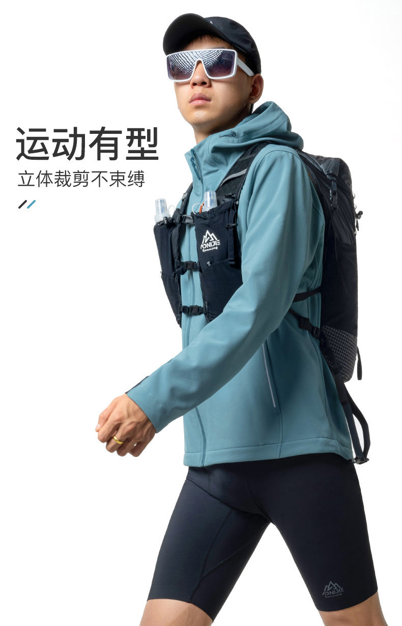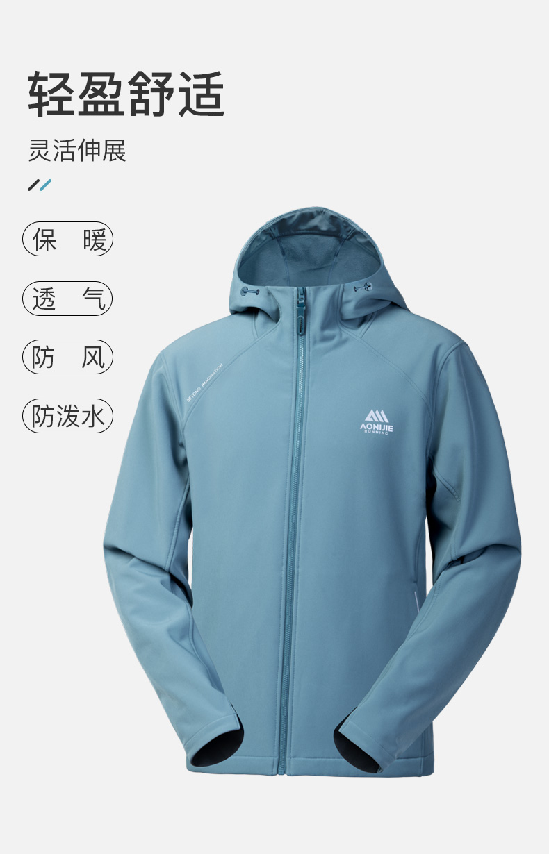 奥尼捷软壳夹克轻盈透气舒适户外运动加绒保暖修身男款连帽防风防泼水/FM5208