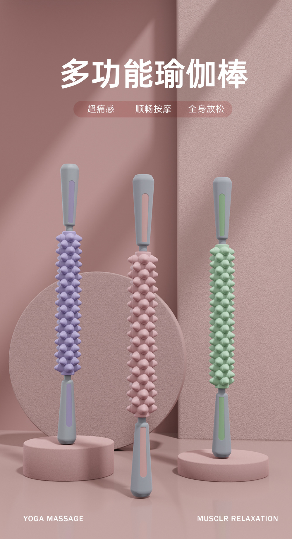 【肌肉放松神器🔥】滚走酸痛,告别水肿!瑜伽按摩狼牙棒,按摩滚轴 小腿肌肉放松神器 滚轮擀大腿琅琊棒,腿部线条管理必备💪薄荷绿/暮光粉/木槿紫,全新配色颜值爆表✨