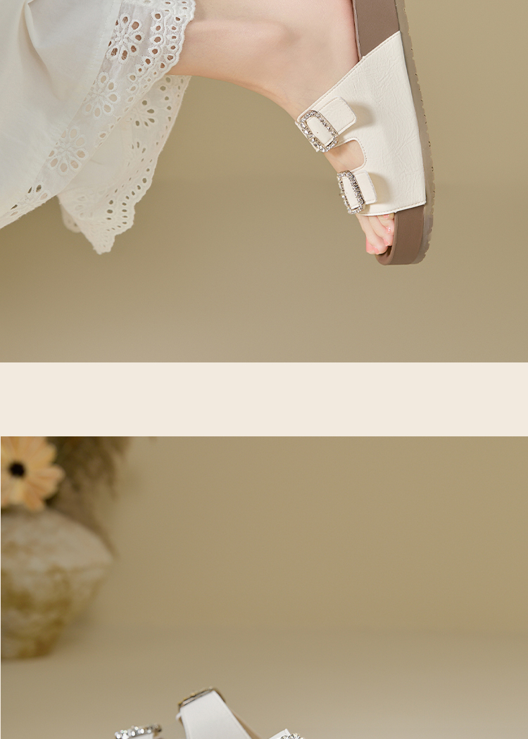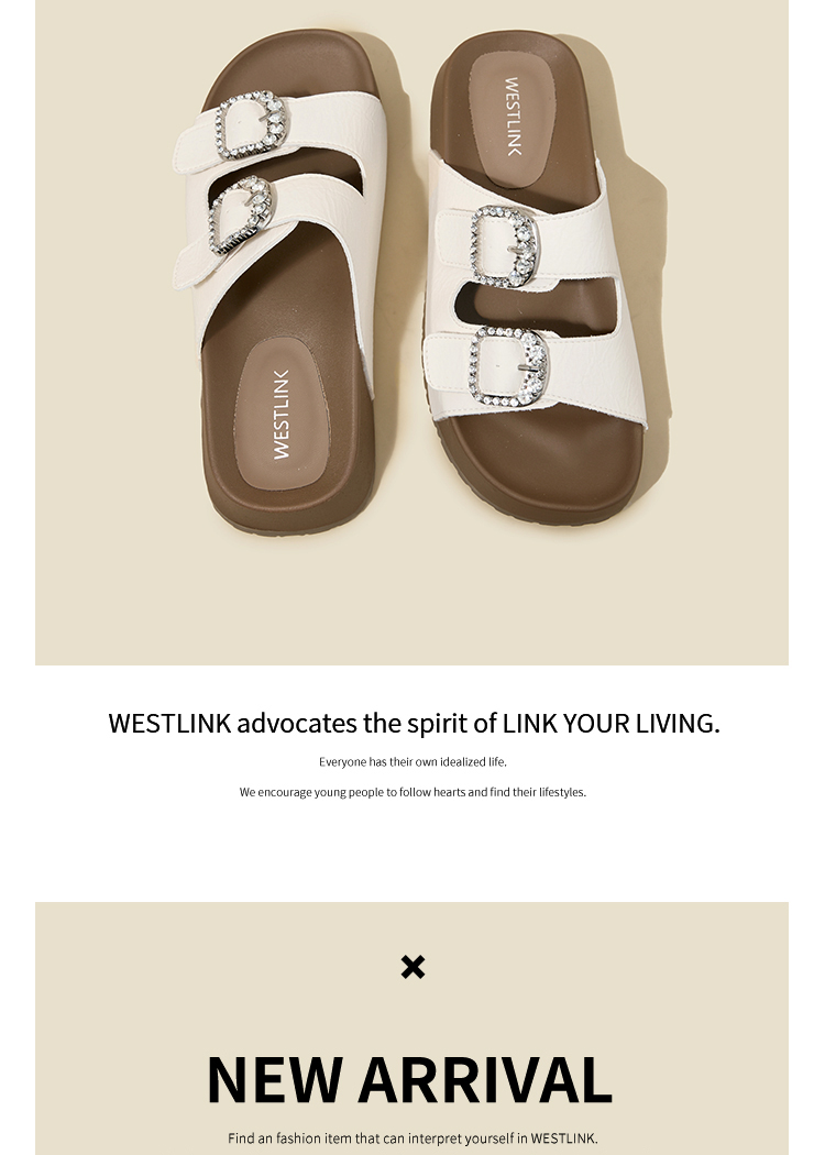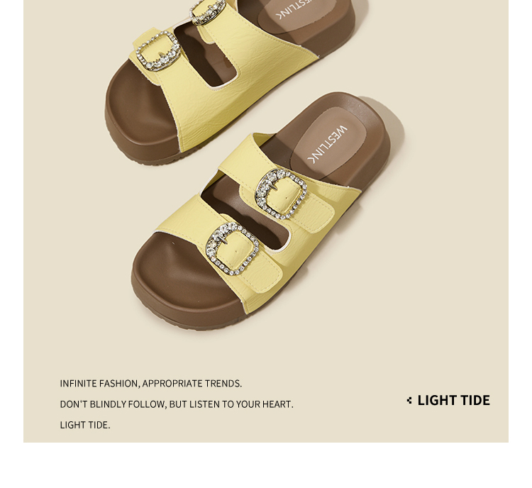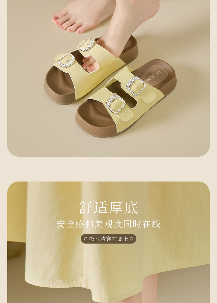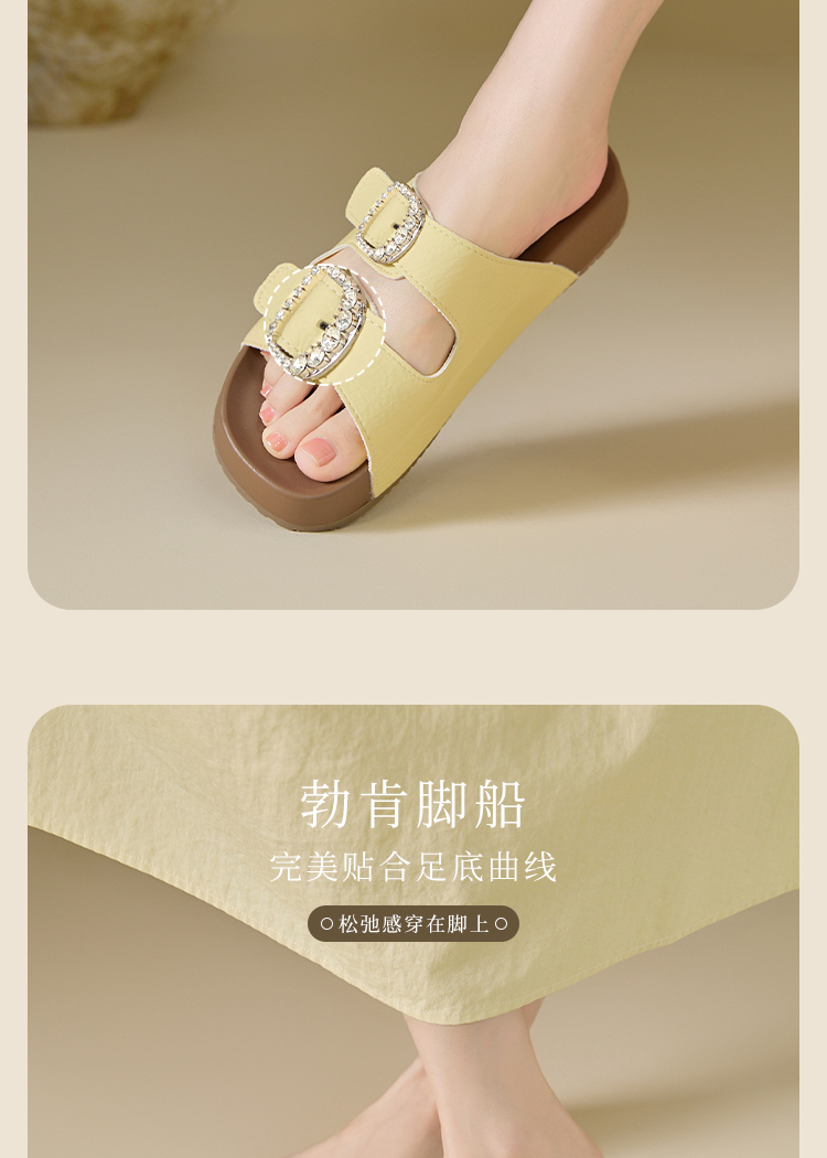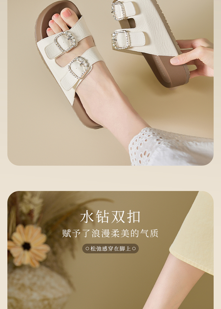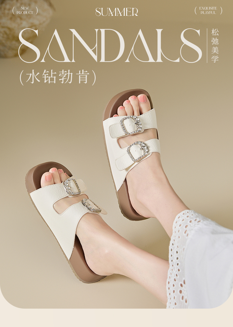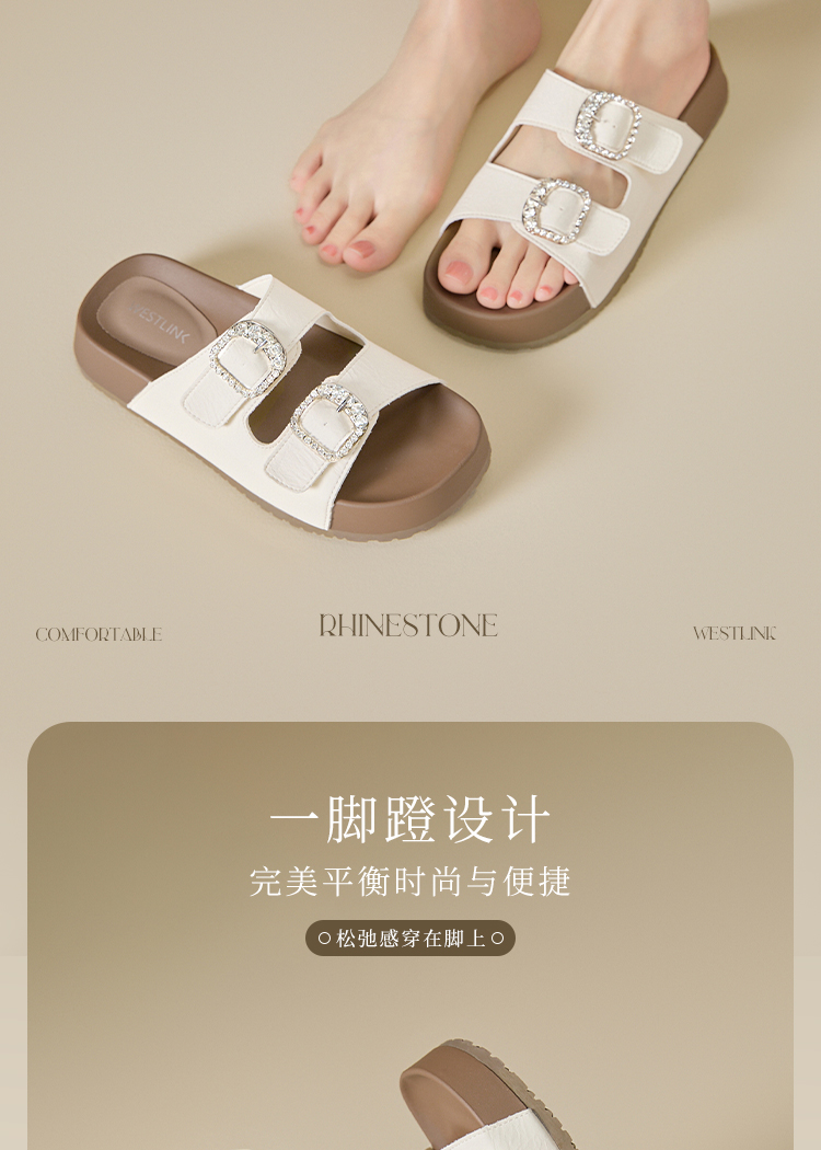 西遇勃肯凉拖鞋女夏外穿新款水钻配裙子平底沙滩鞋外穿一字拖V1156772