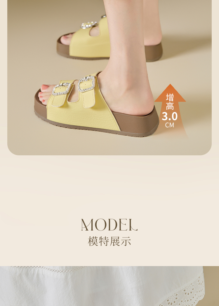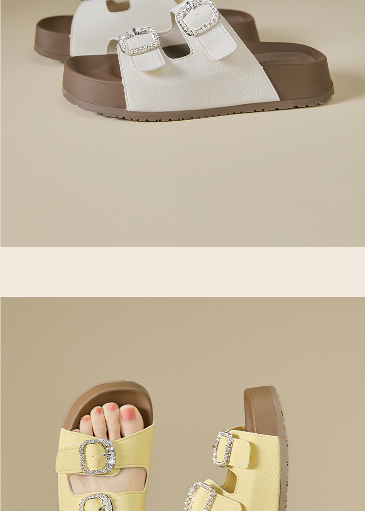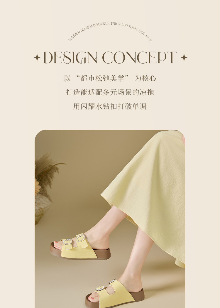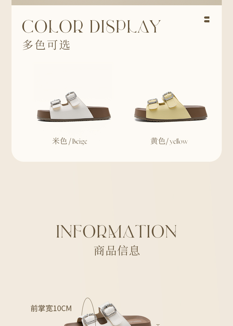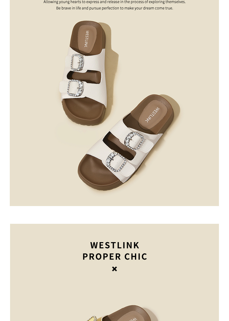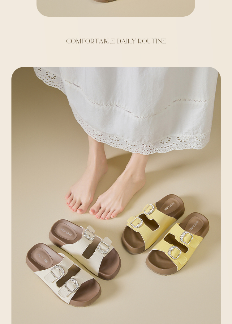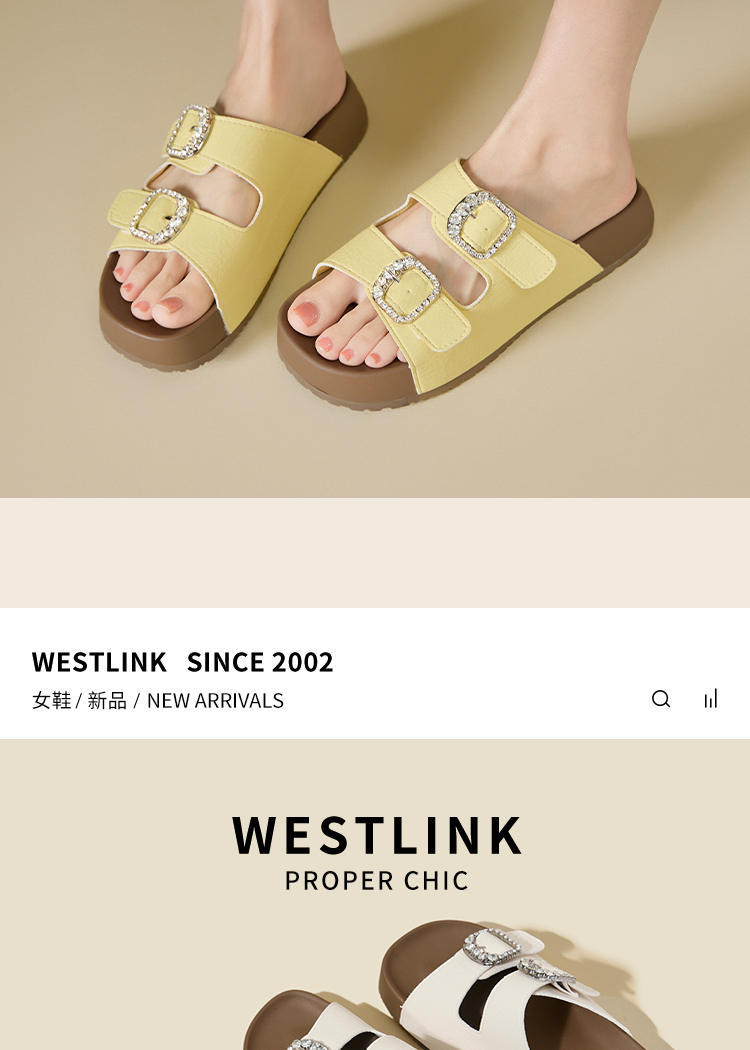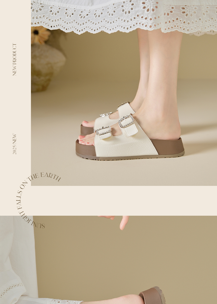 西遇勃肯凉拖鞋女夏外穿新款水钻配裙子平底沙滩鞋外穿一字拖V1156772