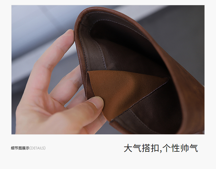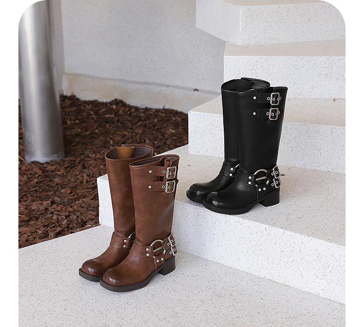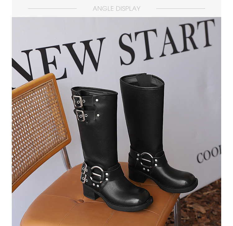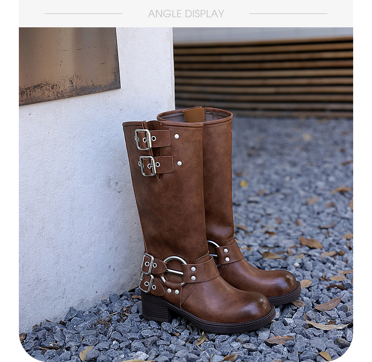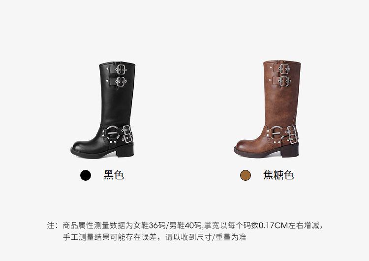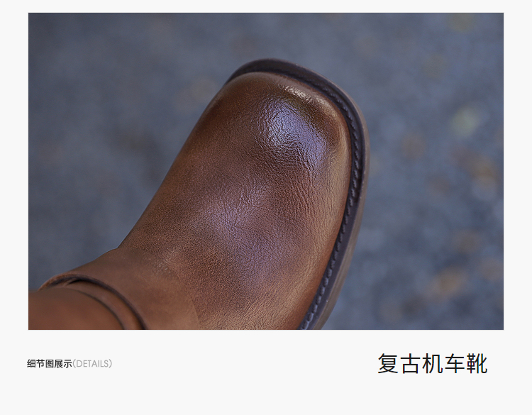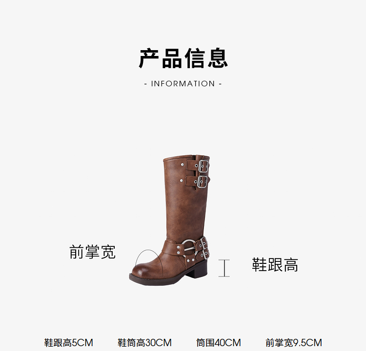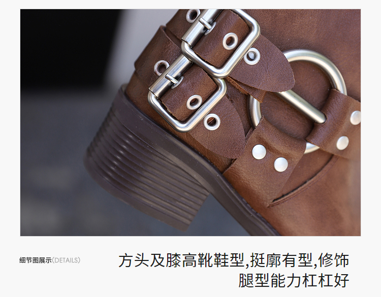 西遇复古机车靴女新款秋季马丁靴美式方头棕色厚底长筒靴子D0033850