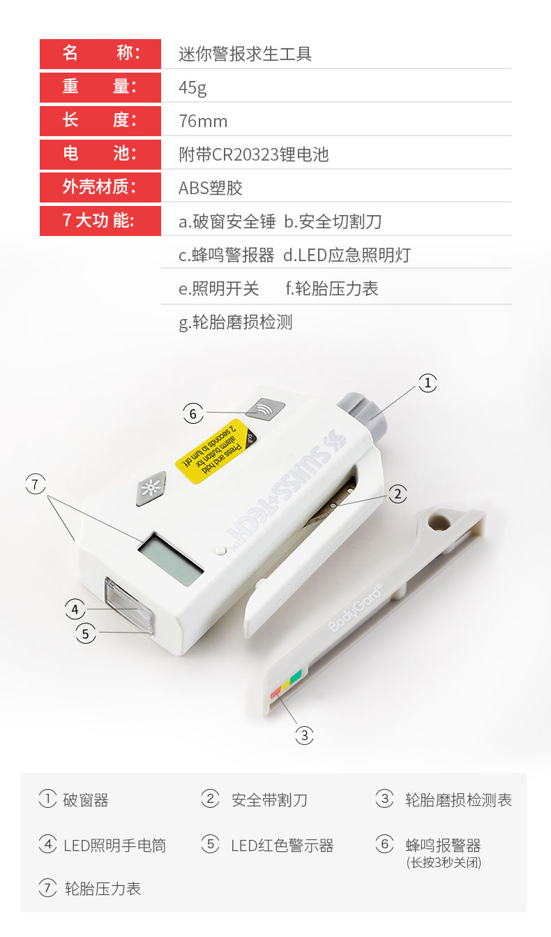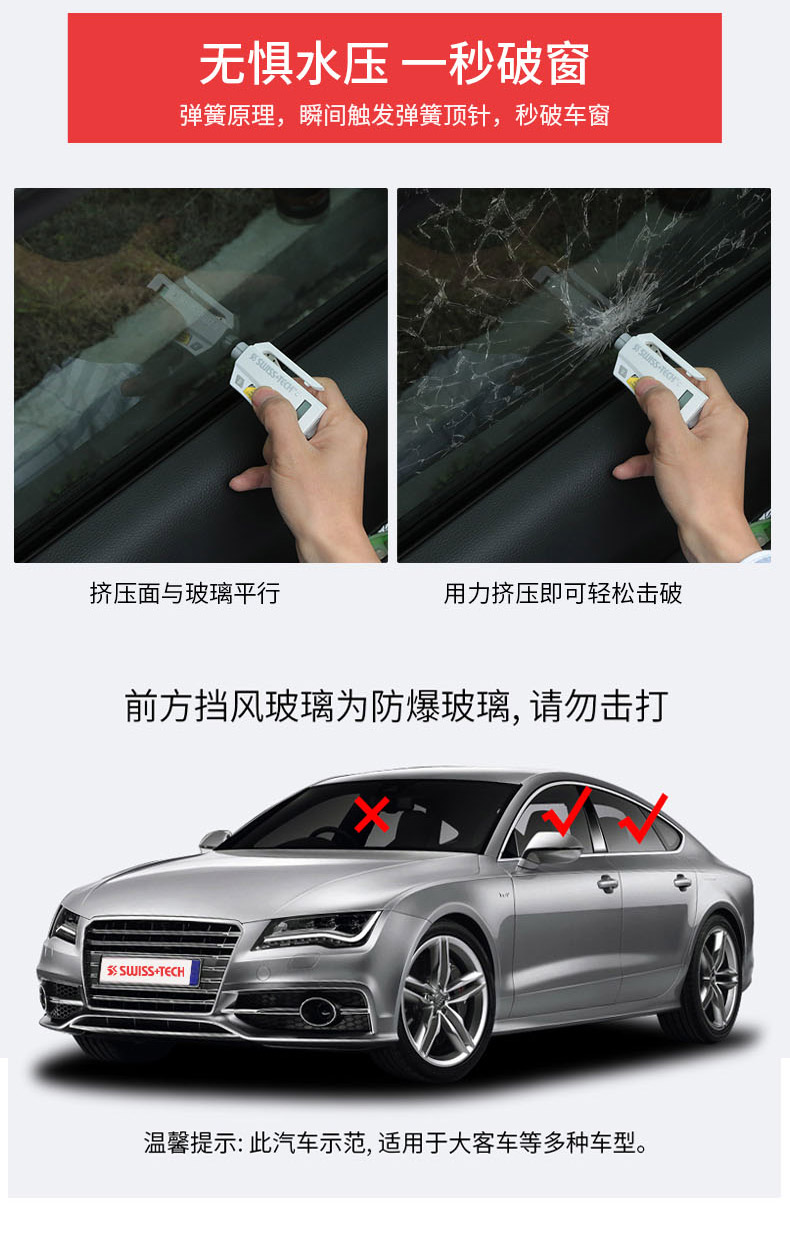 瑞士科技Swiss+Tech汽车安全锤破窗器多功能车神器随身钥匙扣