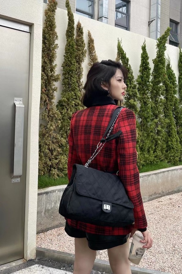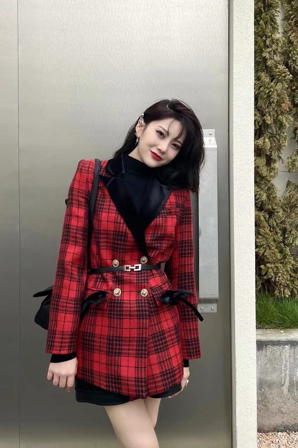 ANSUABEL 红黑格纹翻领外套 15476【不含腰带】