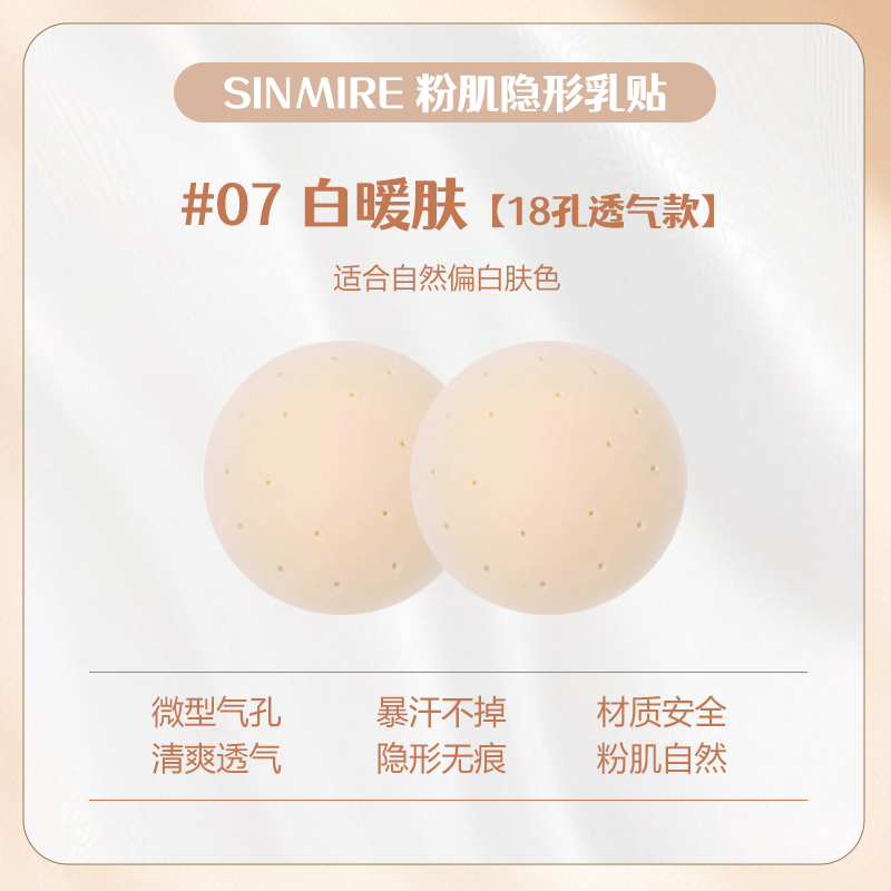 【6.10积分当钱花】SINMIRE胸贴仿真肌乳贴防凸点 #07白暖肤-18孔透款|