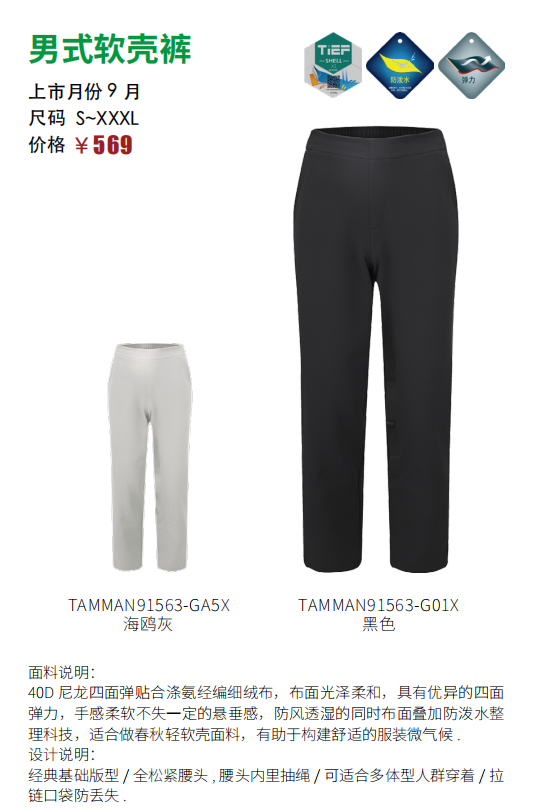 探路者男式软壳裤TAMMAN91563