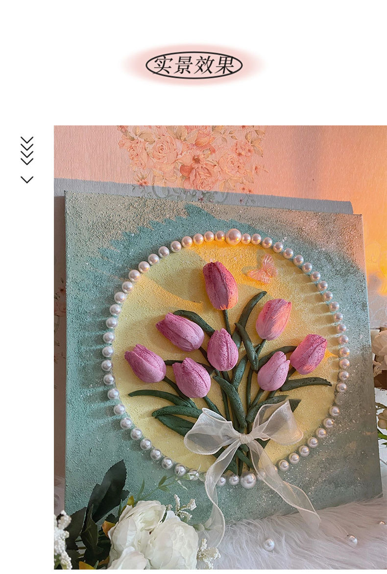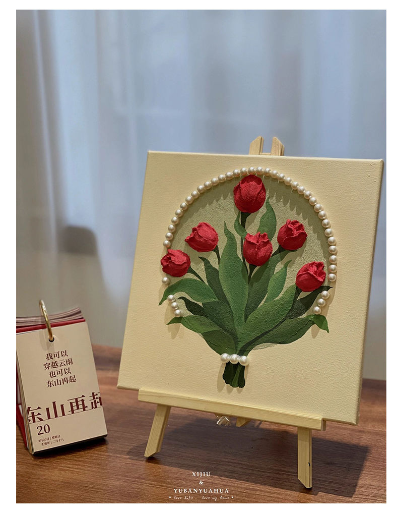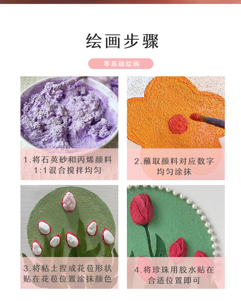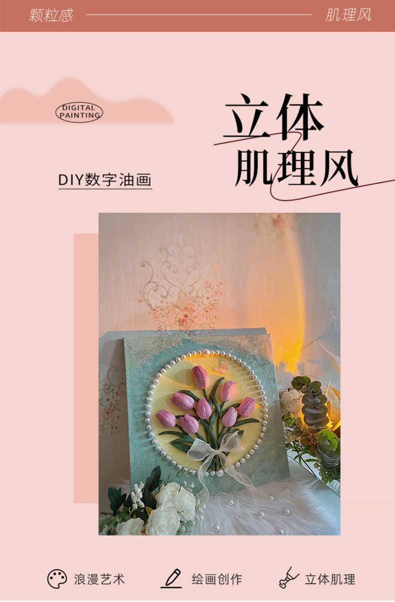 3D立体肌理画郁金香珍珠填充丙烯石英砂数字油画diy手工油彩挂画