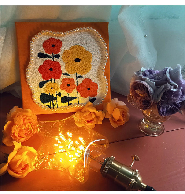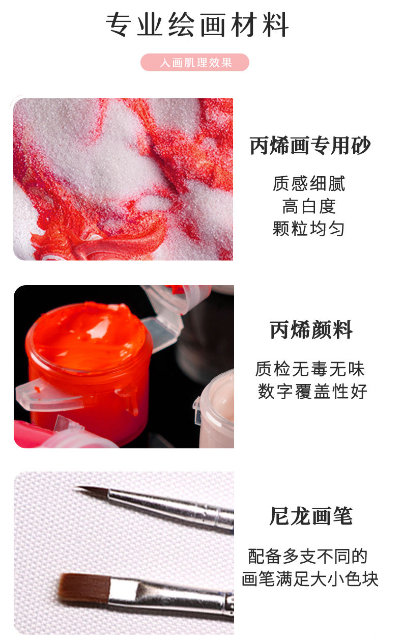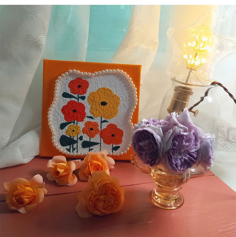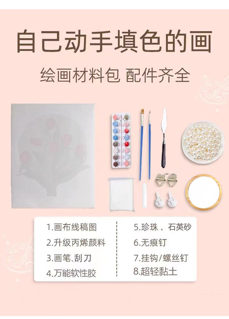 3D立体肌理画郁金香珍珠填充丙烯石英砂数字油画diy手工油彩挂画