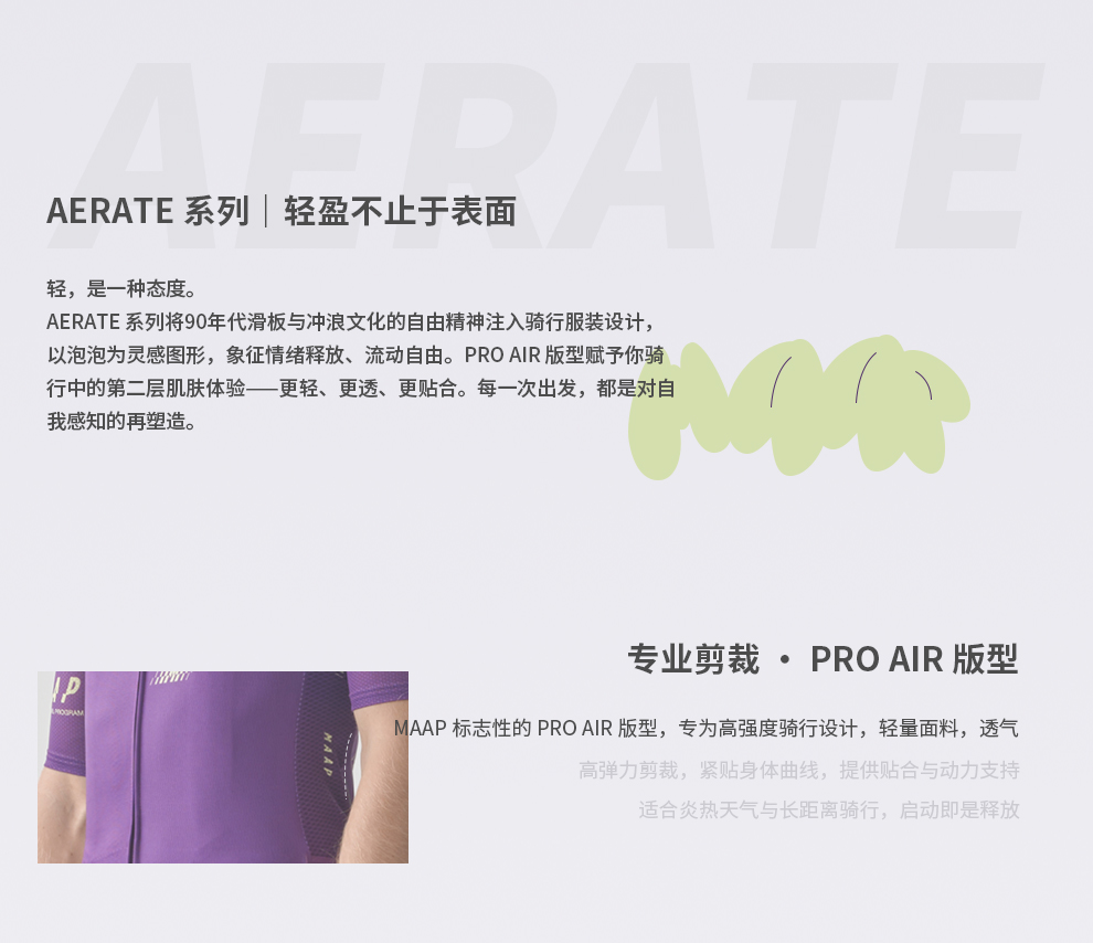- MAAP作为澳洲功能性骑行服,其出色的时尚设计元素为骑行生活增添色彩。MAAP在为专业车手提升性能表现方面也毫不妥协。