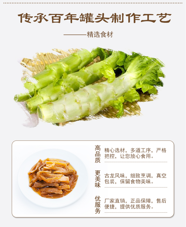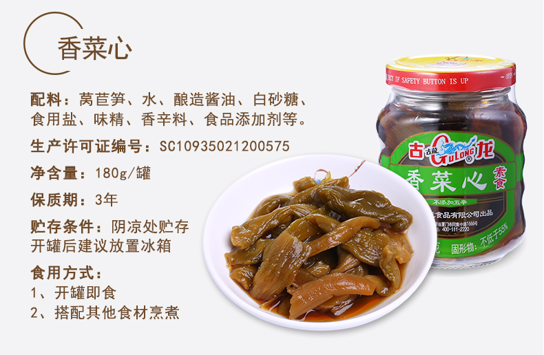 古龙食品香菜心罐头下饭菜熟食凉菜小吃脆菜芯脯泡菜酱菜180g*6