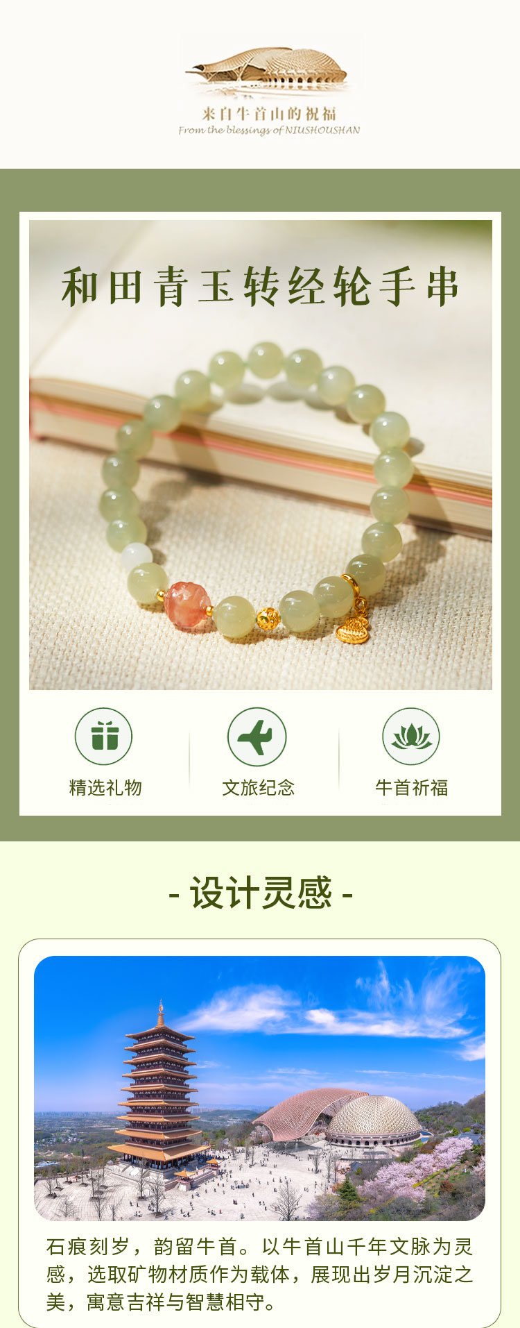牛首山文创和田青玉转经轮手串个性配饰文创手串送女生闺蜜礼物