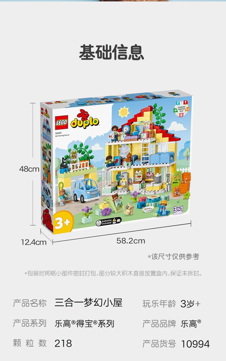 乐高积木 L10994乐高得宝大颗粒系列三合一梦幻小屋