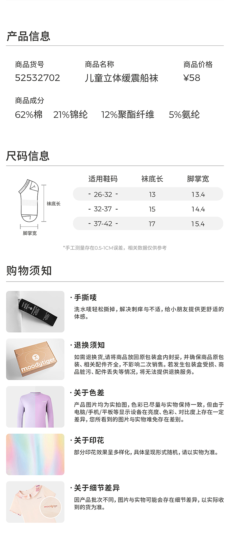 【专属】moodytiger儿童袜子25夏新男女童吸湿防滑运动不移位船袜52532702