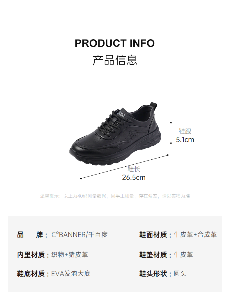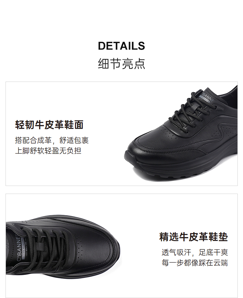 千百度秋季商务休闲鞋牛皮革脚垫通勤会议通用男鞋A25418105