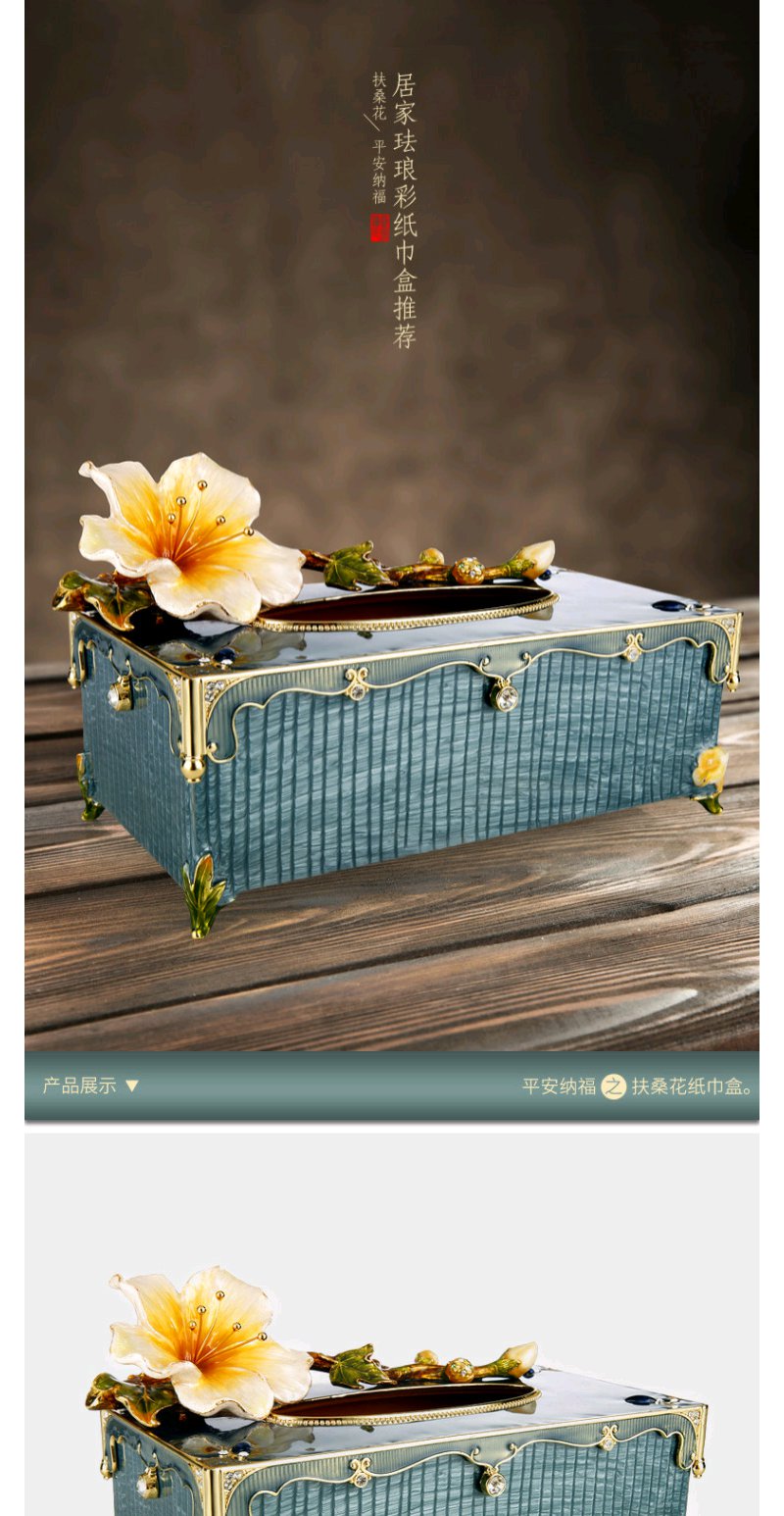 罗比罗丹珐琅彩平安纳福纸巾盒抽纸盒客厅茶几摆件创意创意装饰品