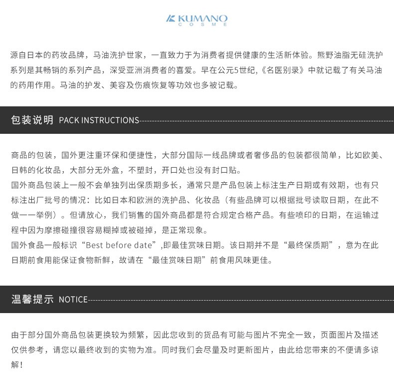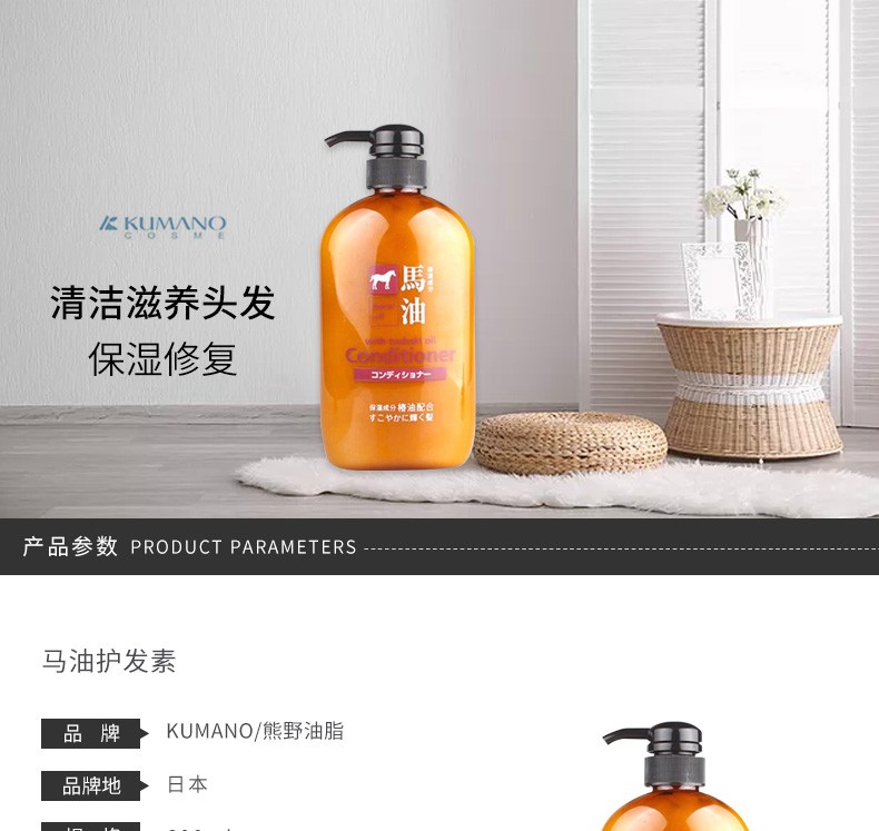 KUMANO熊野油脂 马油护发素 600ml 日本