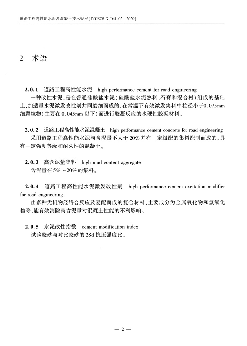 | 道路工程高性能水泥及混凝土技术规程(T/CECS G:D41-02—2020) | ||