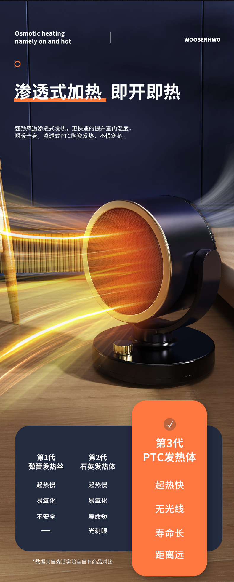 【无光3秒速热!速热安全取暖器】办公室、小型宿舍都适用。静默运行,温暖环绕,小型宿舍。节能省电,电暖气小太阳热风机办公室节能省电速热小型宿舍取暖器