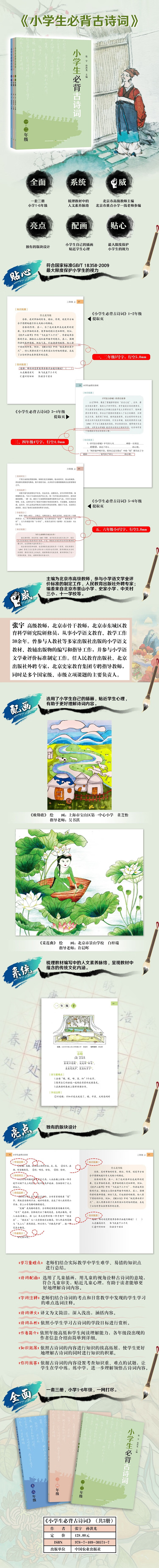 小学生必背古诗词 (套装共3册,1~6年级)