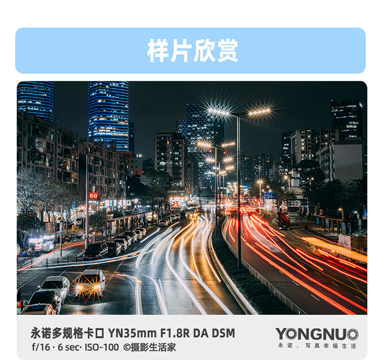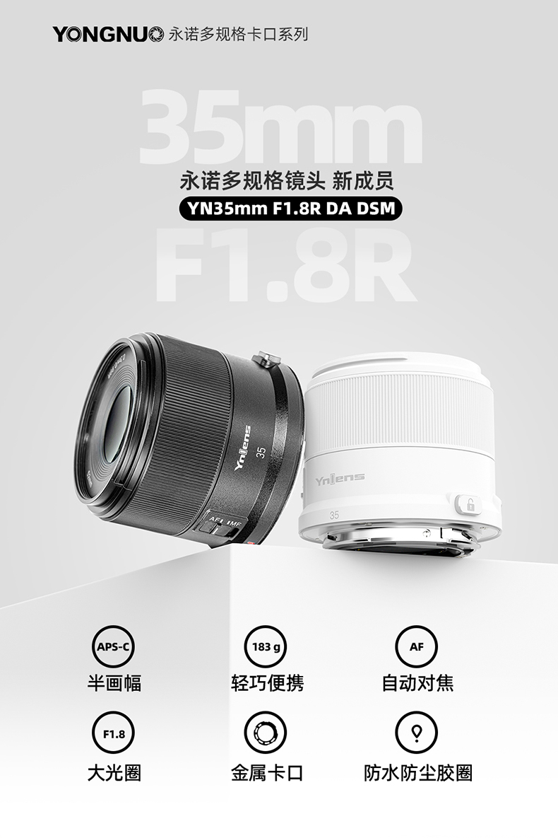 永诺 35mm f1.8 多规格卡口APS-C画幅自动对焦镜头YN35mm F1.8R DA DSM【顺丰特快】