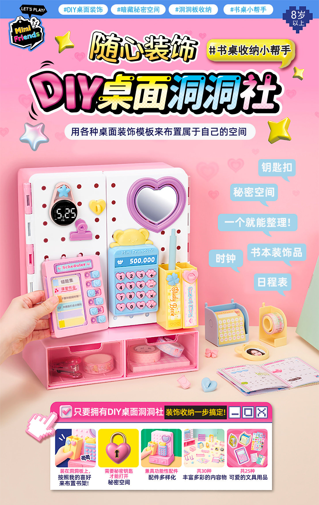 mimiworldDIY桌面洞洞社装饰收纳盒秘密空间女孩过家家玩具礼物