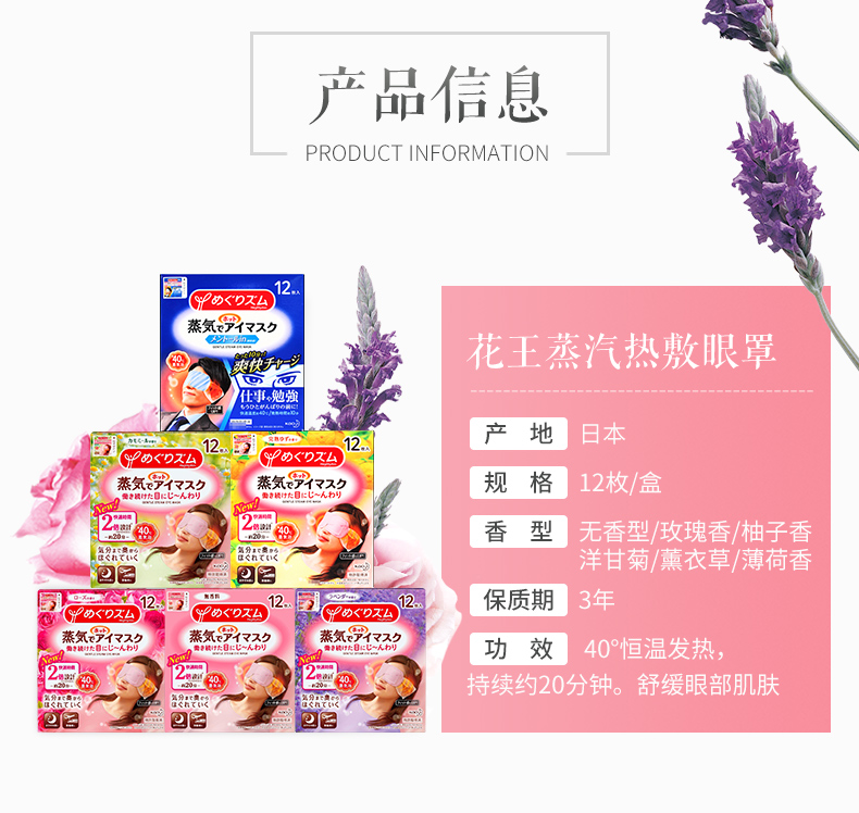 KJ 日本花王 蒸汽眼罩 热敷眼膜舒缓解眼部疲劳护眼贴12片装