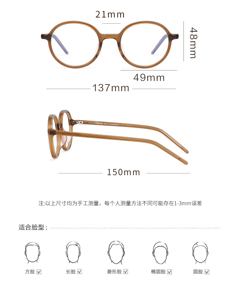 普莱斯光学镜框PB8181 韩系小圆框 板材材质 男女通用 四色可选