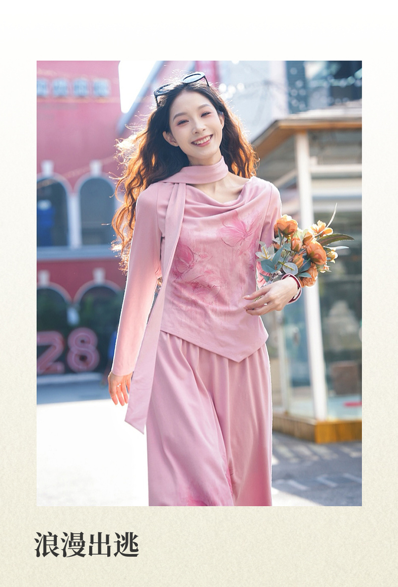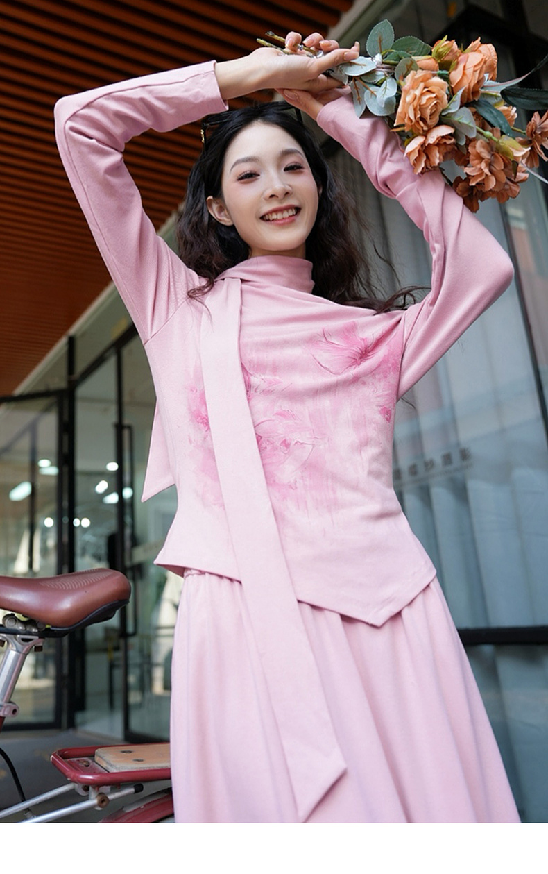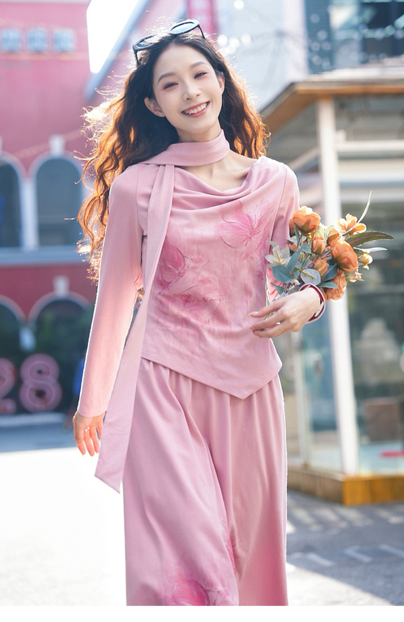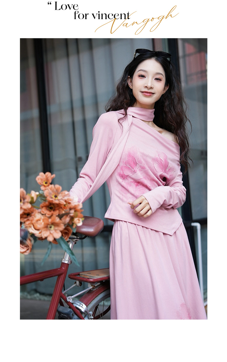 两三事梵高文艺浪漫出逃2025春季新款印花兜兜领两件套女时尚套装