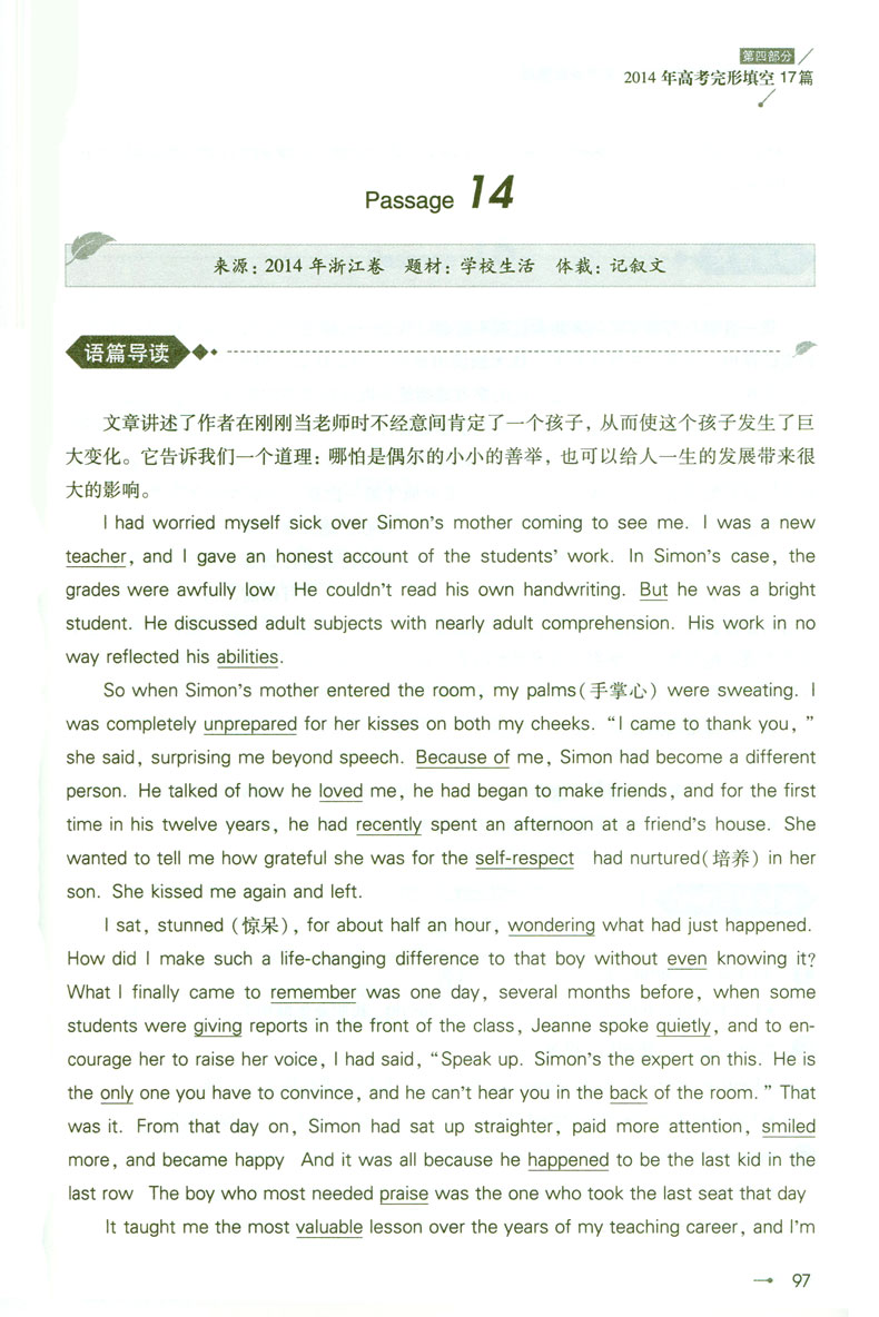 正版 历届高考完形填空美文 背诵版 朗读 词汇 语法 真题 阅读理解