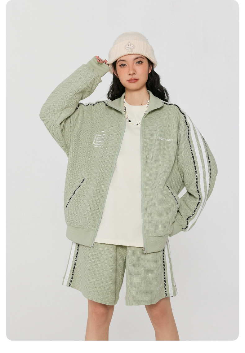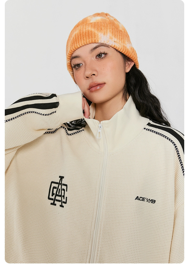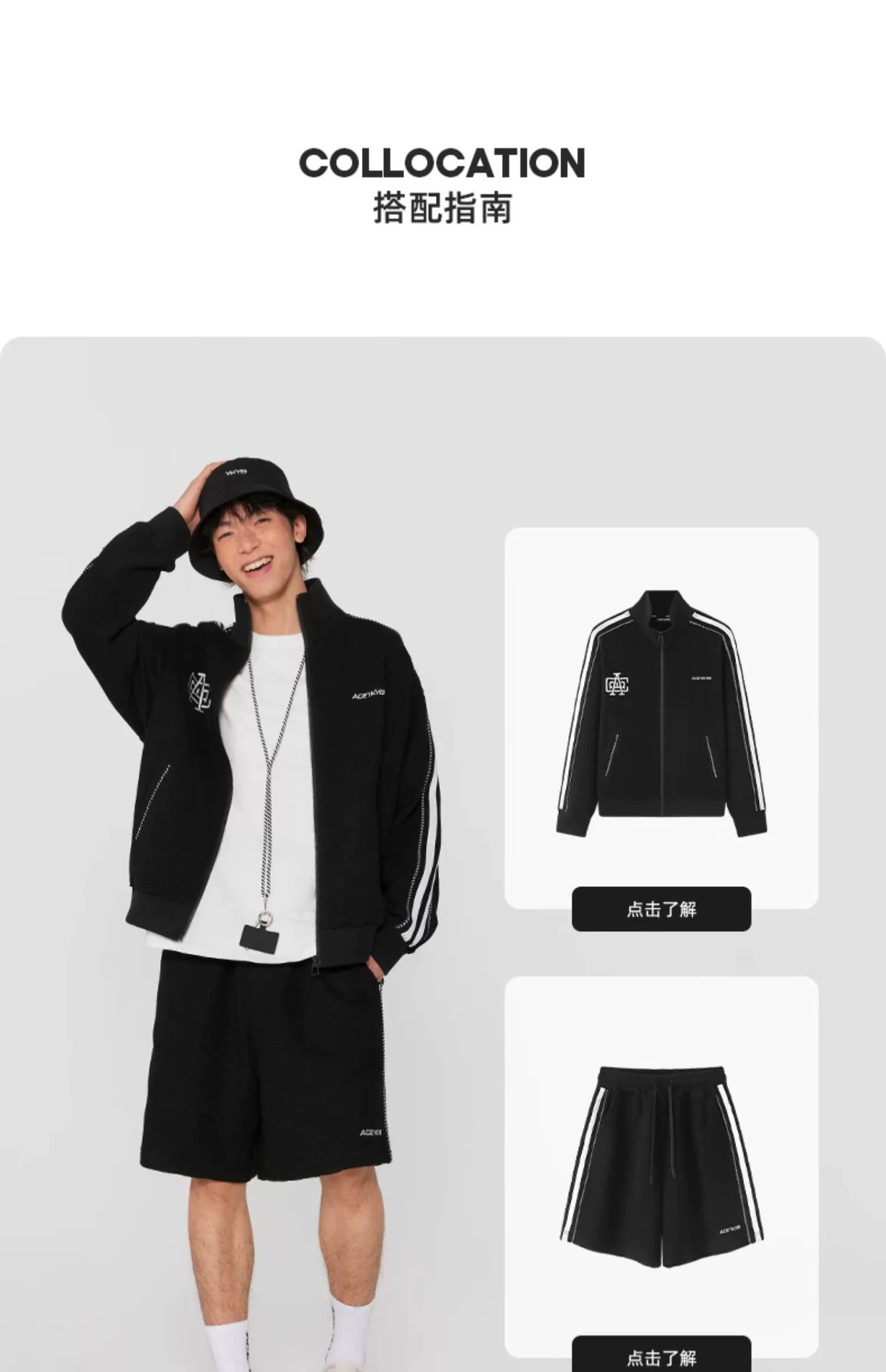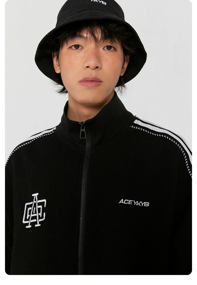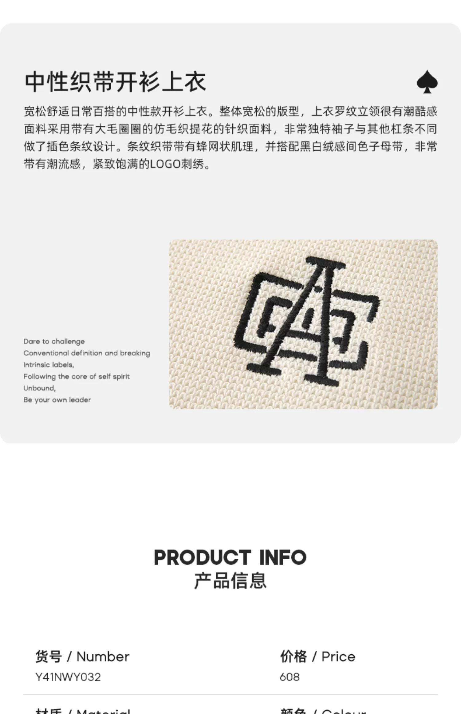 [黄子韬]YKYB黄子韬宽松美式开衫街头潮条纹撞色上衣运动休闲外套Y41NWY032