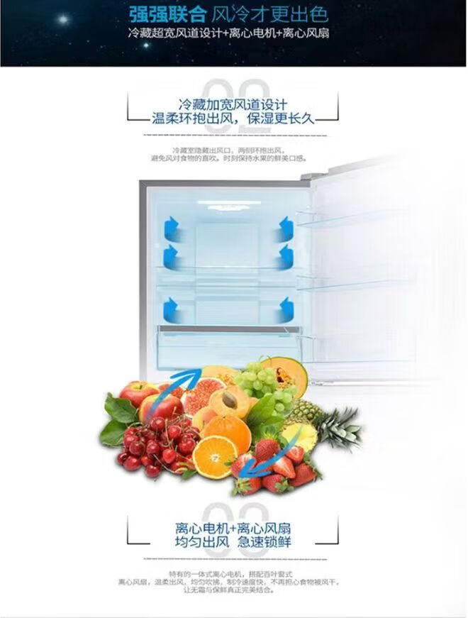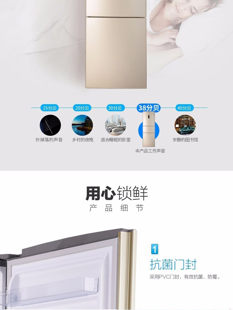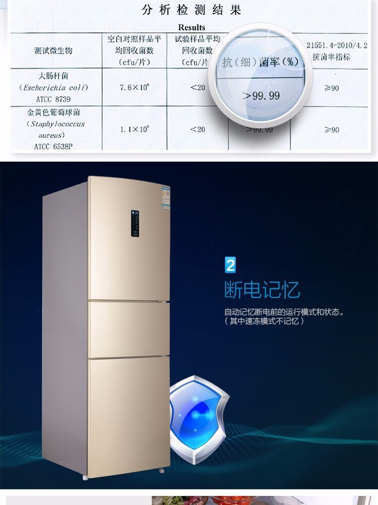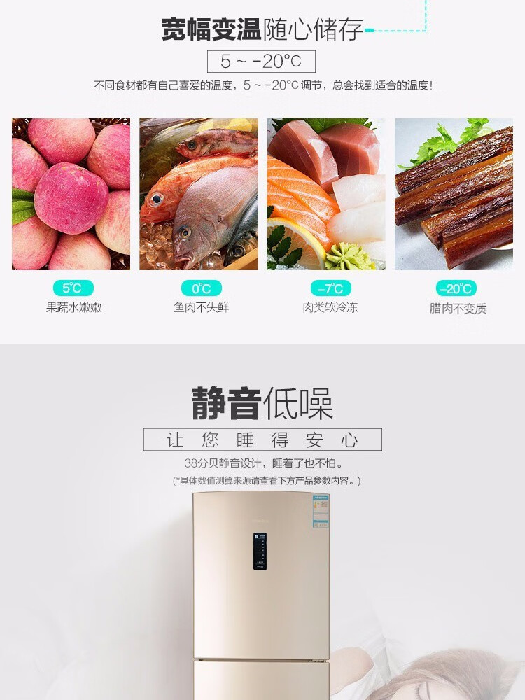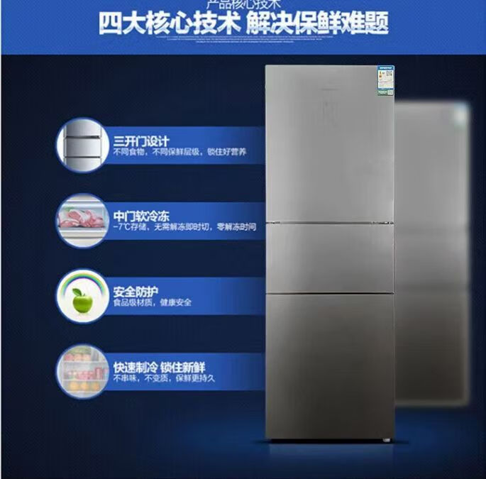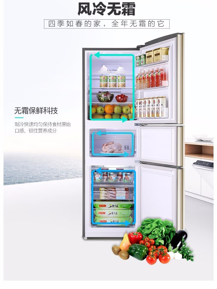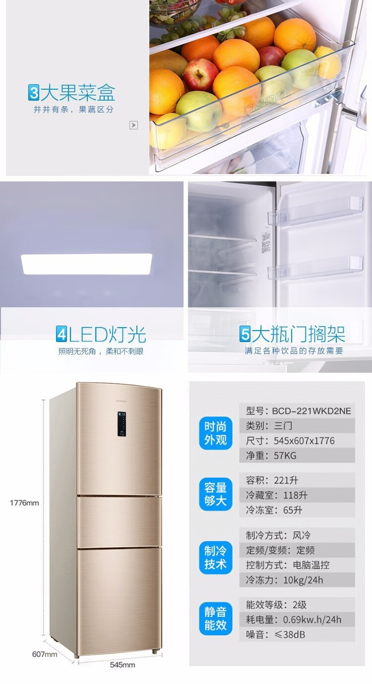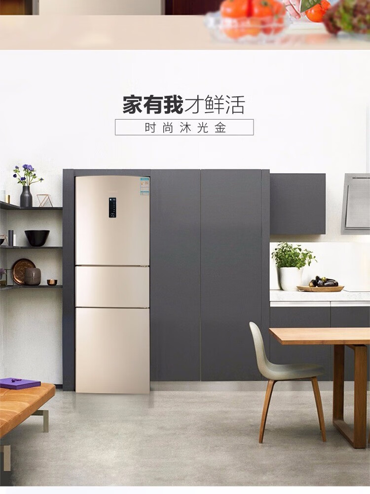 容声221升三门电冰箱家用冷冻冷藏风冷无霜软冷冻出租房小型宿舍节能 221WRB3NYC/灰色/风冷钢玻门