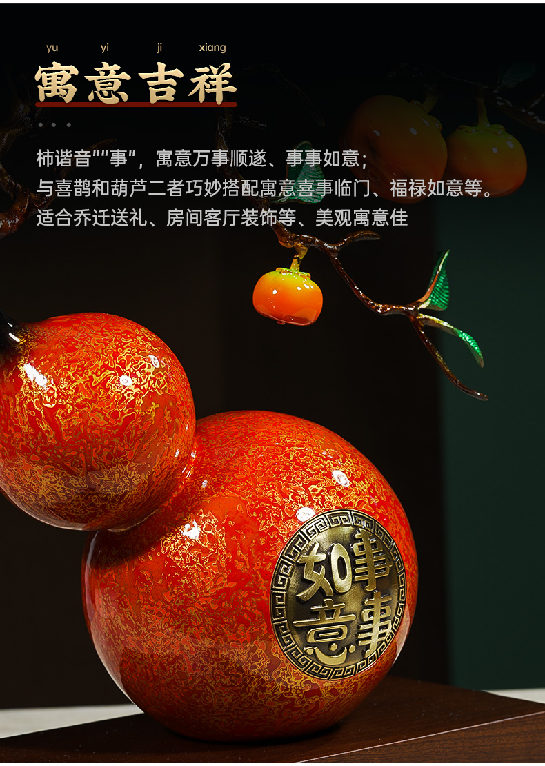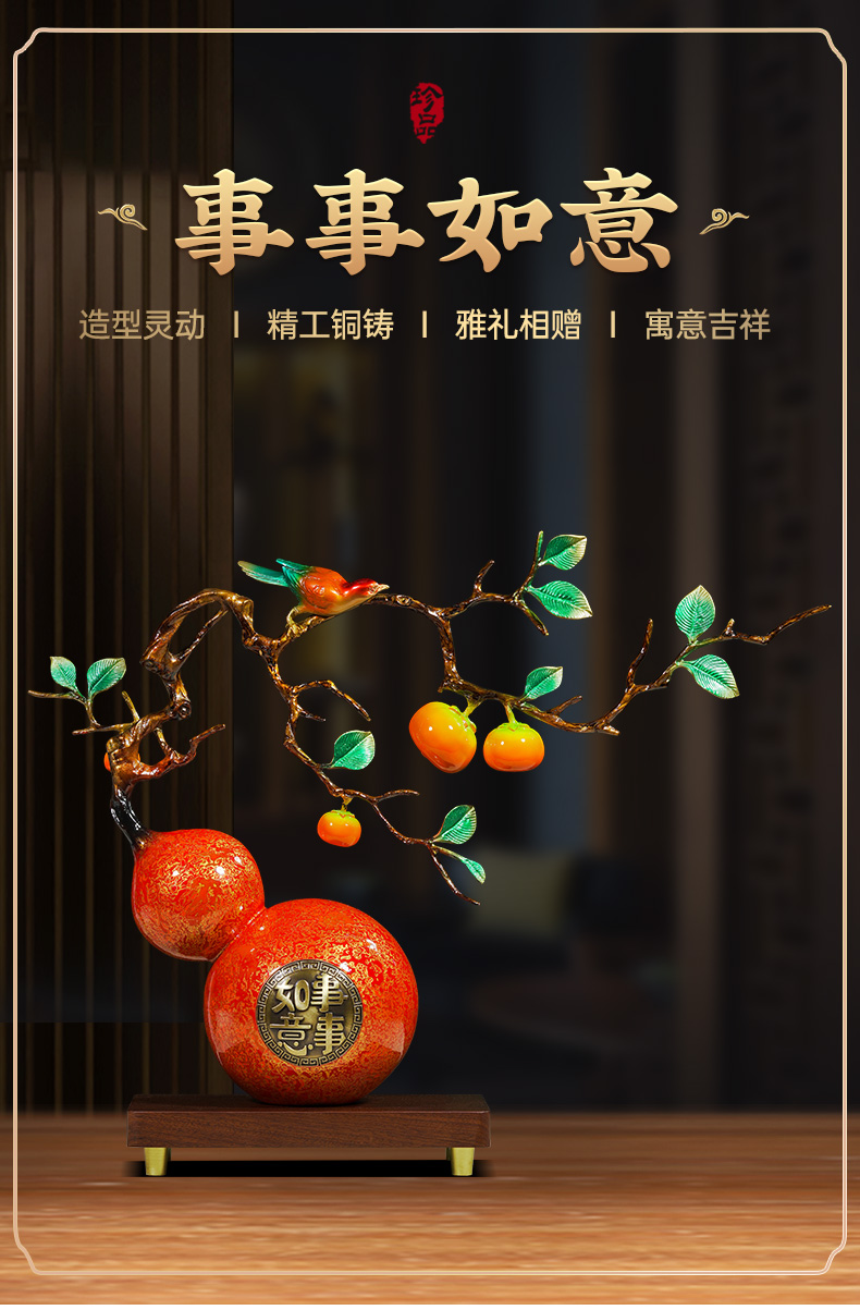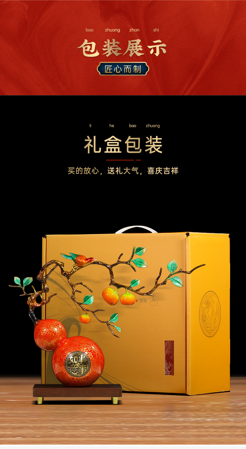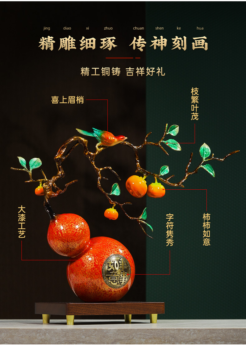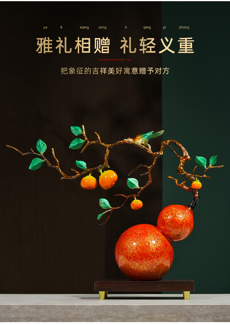 EE-QK-BJ1152D 柿柿如意纯铜大漆葫芦(560*150*440)