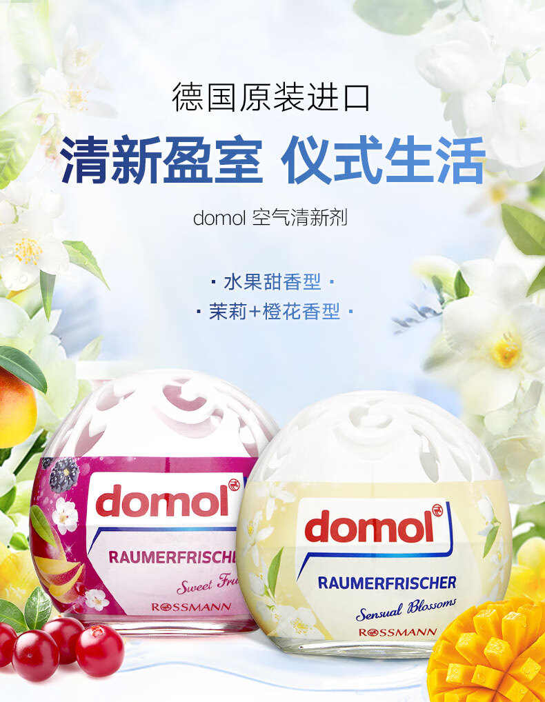 【中欧班列2盒】德国domol空气清新剂 原装进口花香果香持久芳香剂去异味室内香氛摆件 100ml/瓶 BL