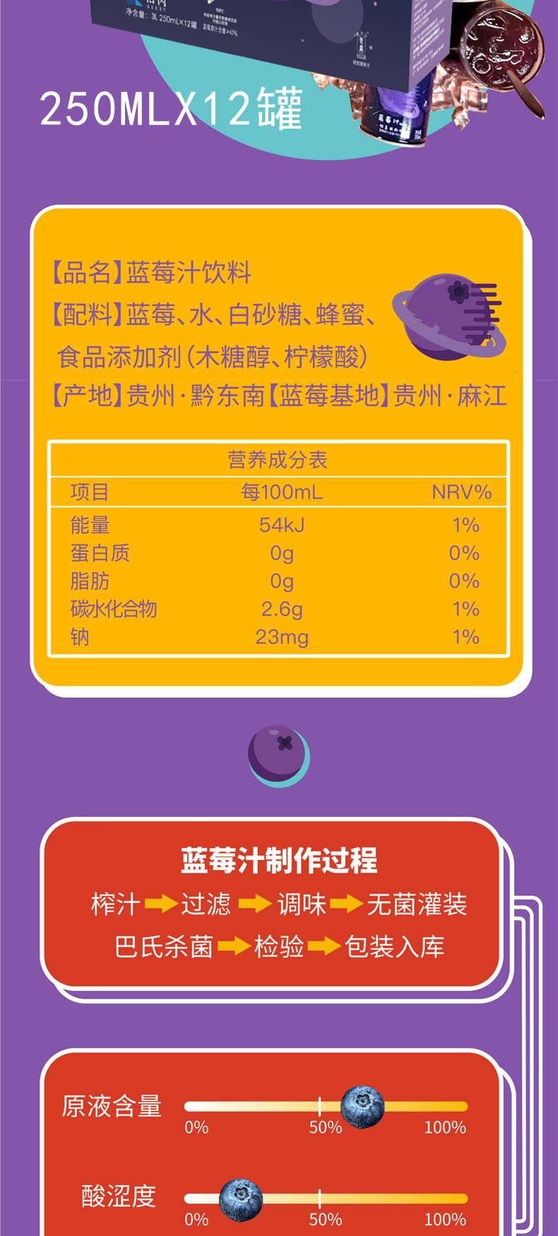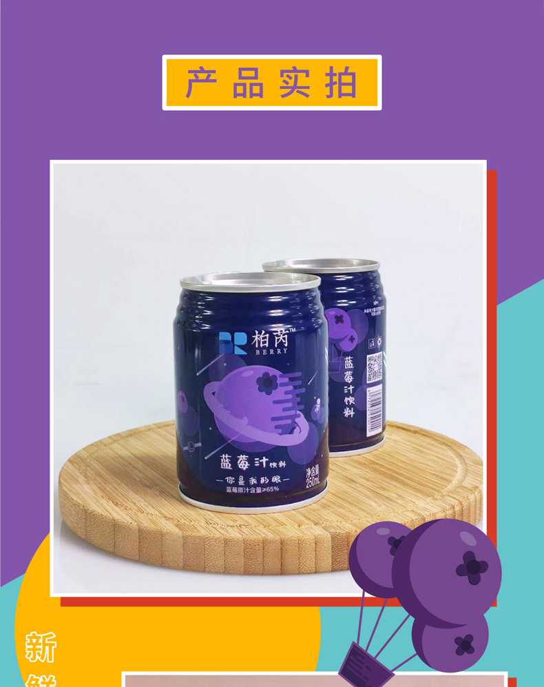 【柏芮】蓝莓汁饮料(罐装)250ml*12罐