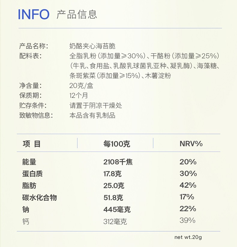 奶酪博士 ≥30%奶酪夹心海苔脆 20g*4