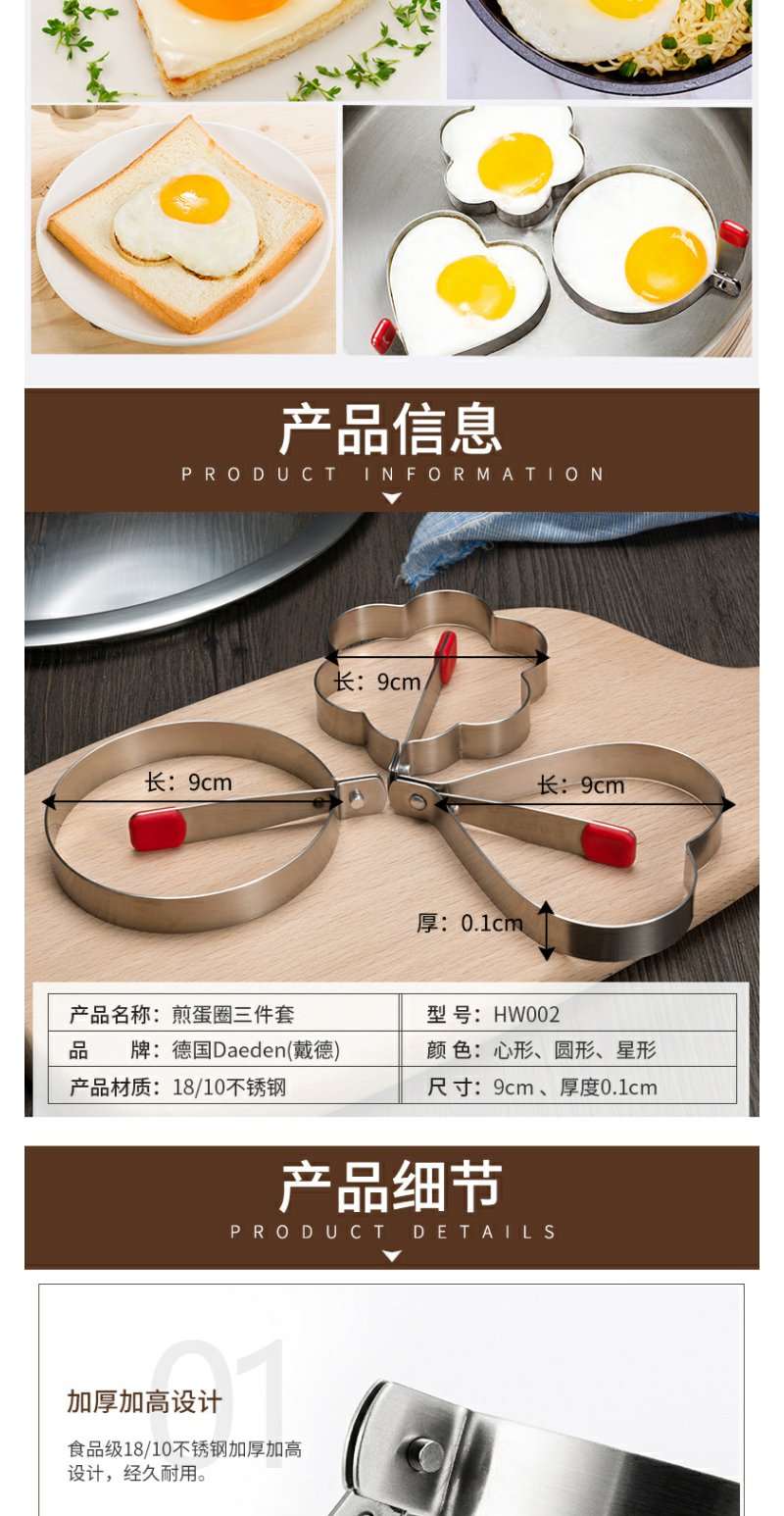 德国戴德加厚不锈钢煎蛋器创意煎蛋圈不粘三件套HW002