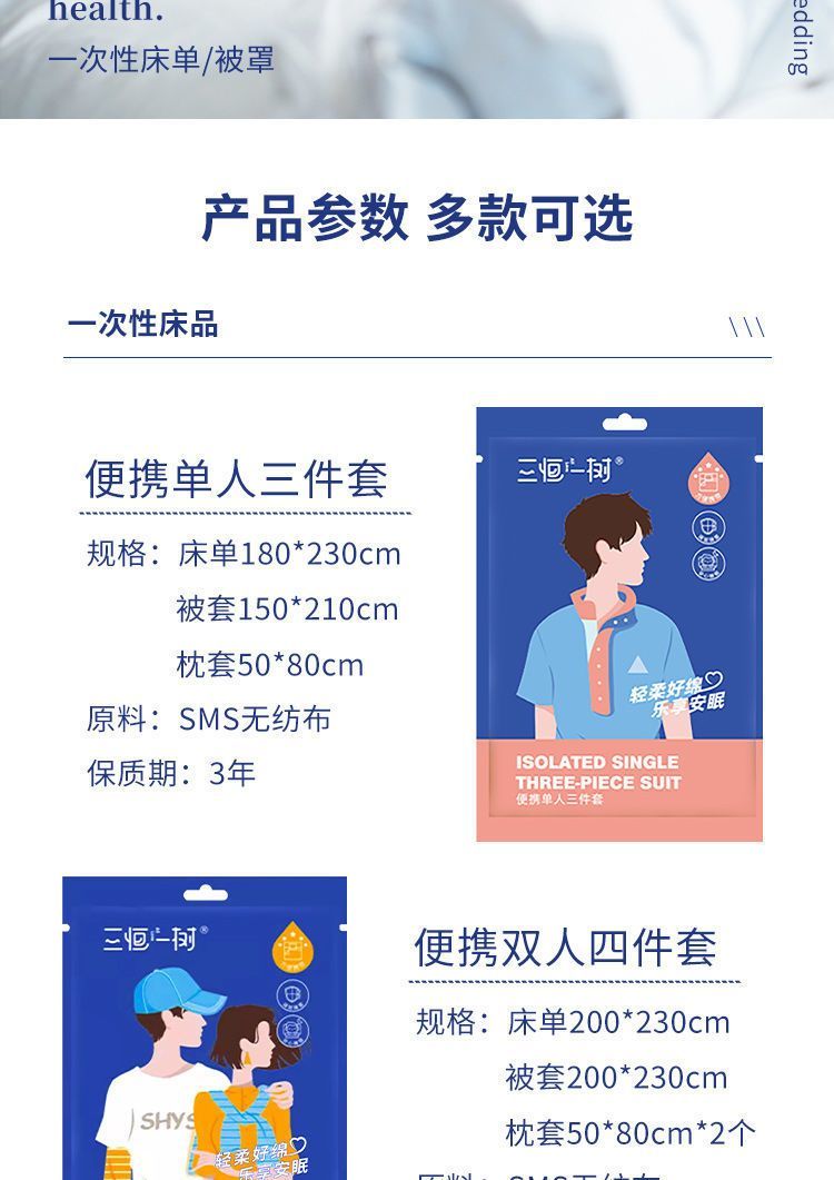 一次性四件套酒店床单双人床被罩大床房三件套隔脏旅游用品