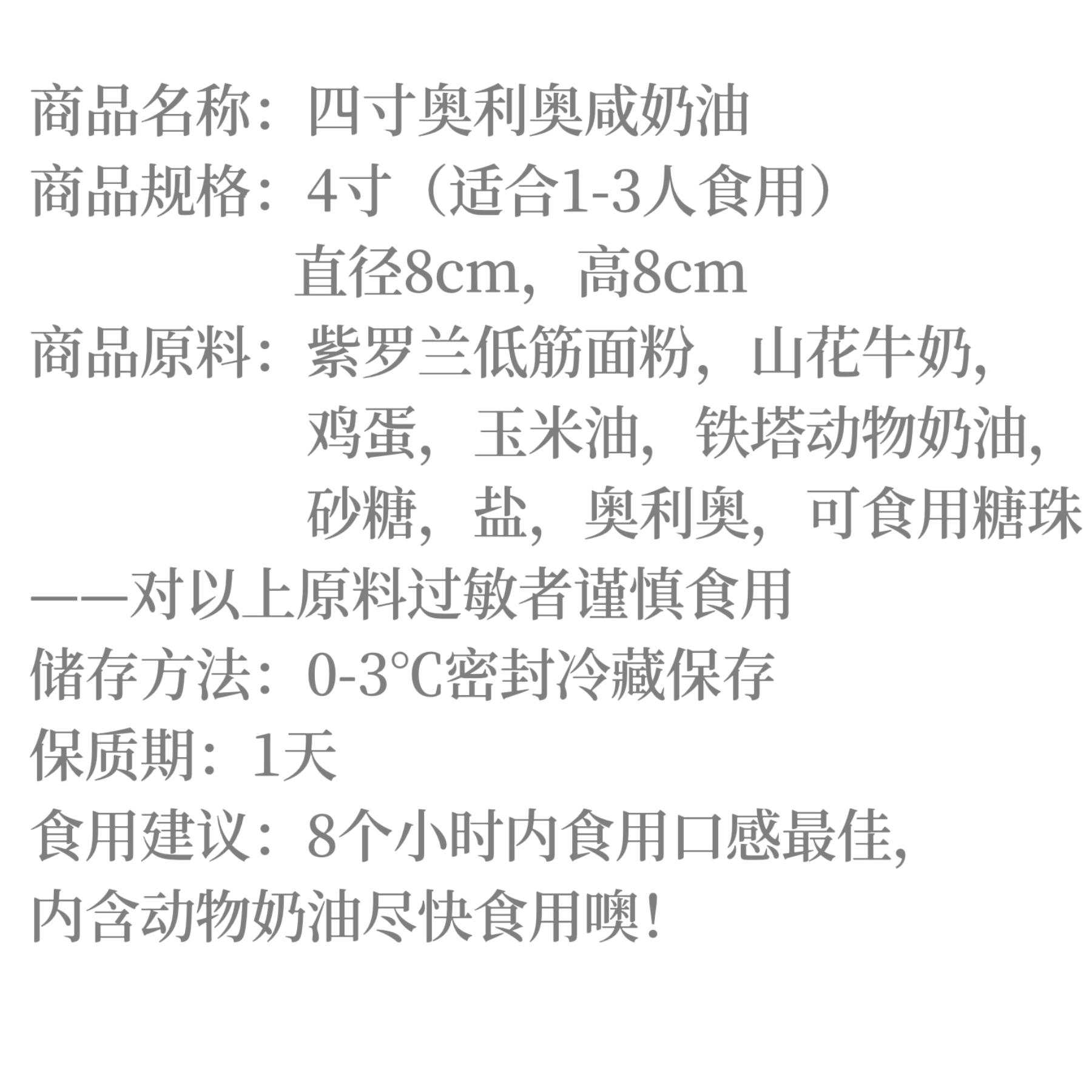 积分商城四寸奥利奥咸奶油蛋糕(高8cm、直径8cm、适合1-3人)积分
