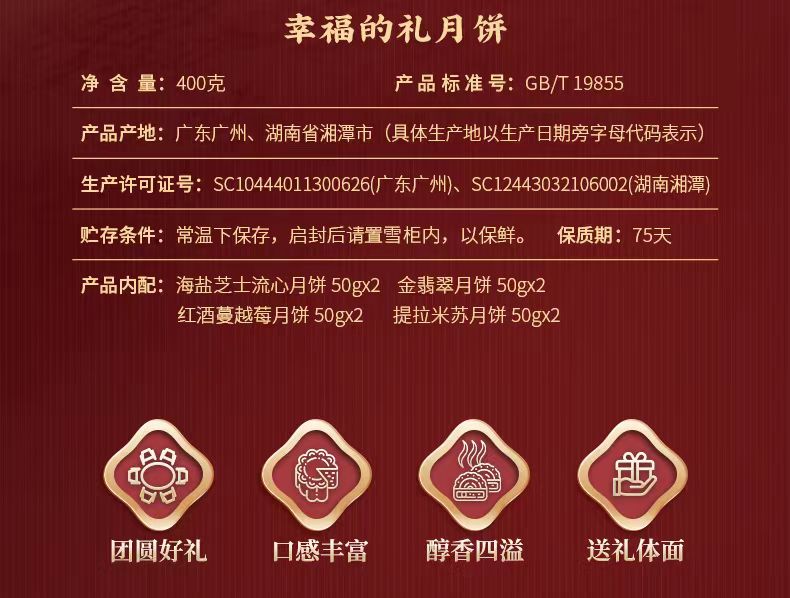 【包邮】广州酒家 | 幸福的礼月饼礼盒400g 4颗装
