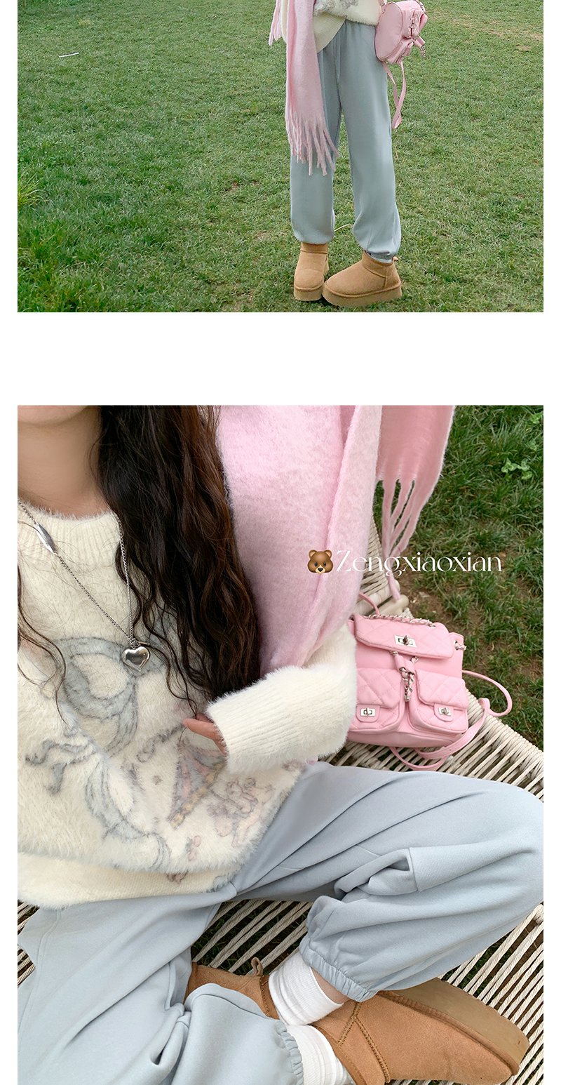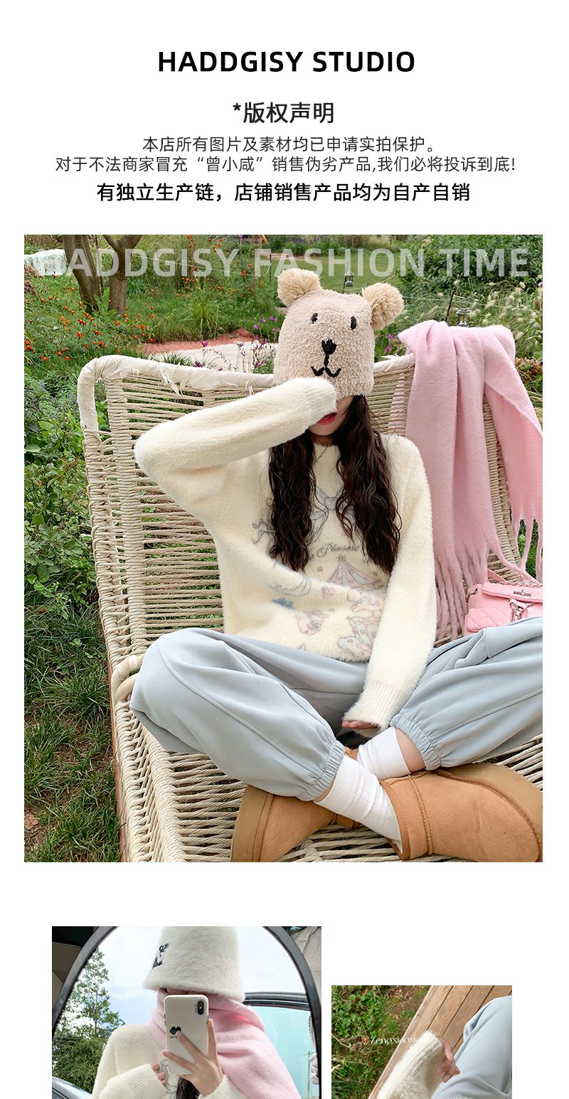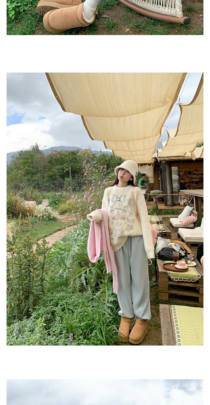 <曾小咸推荐>韩系甜美百搭杏色宽松圆领毛衣
