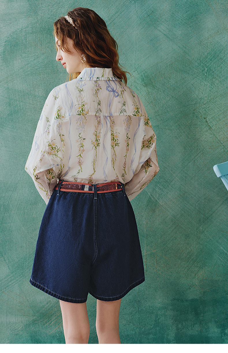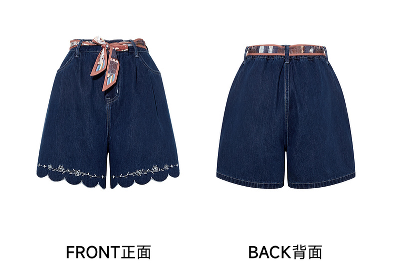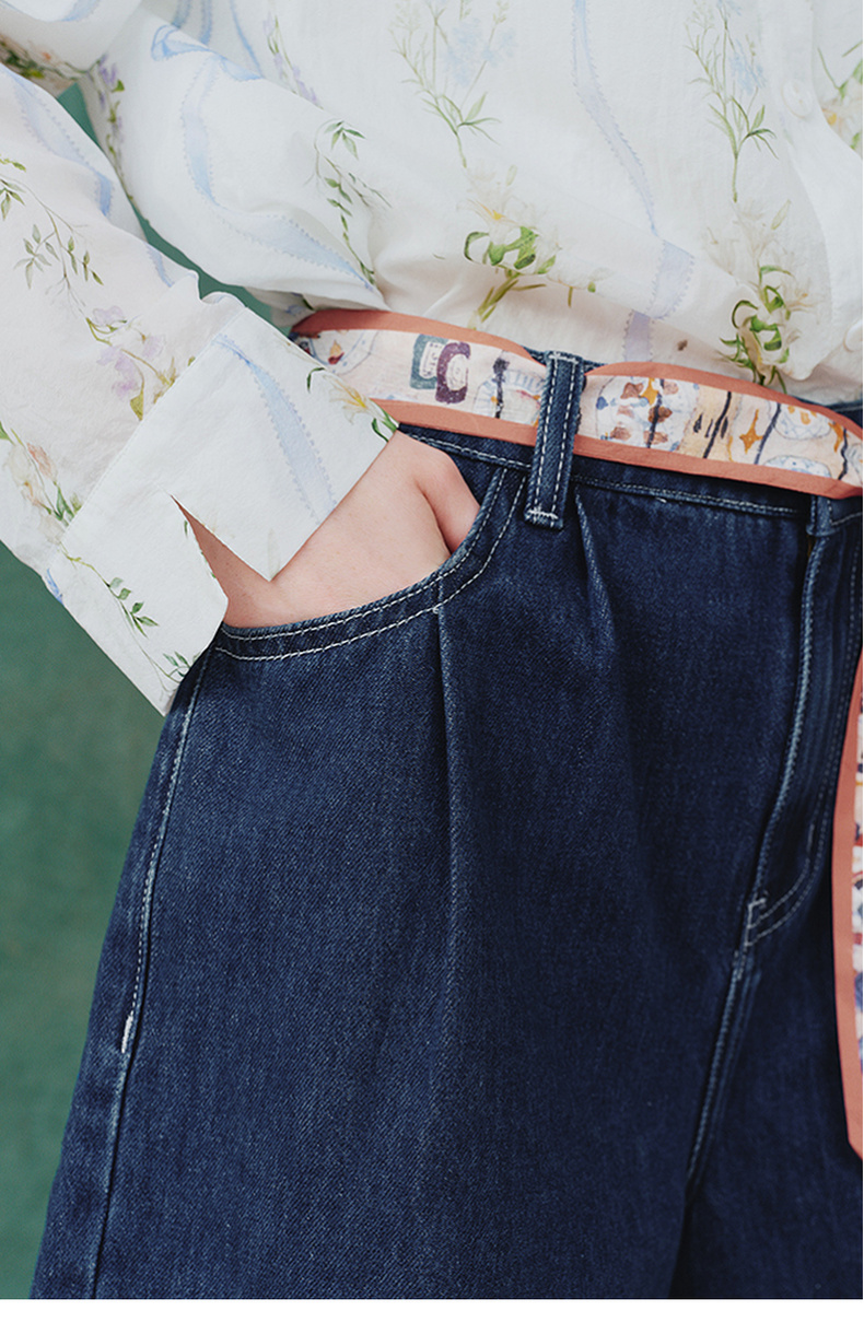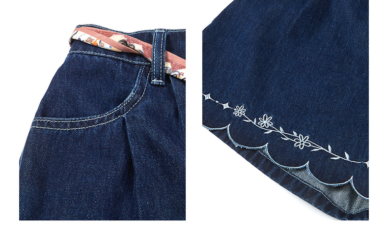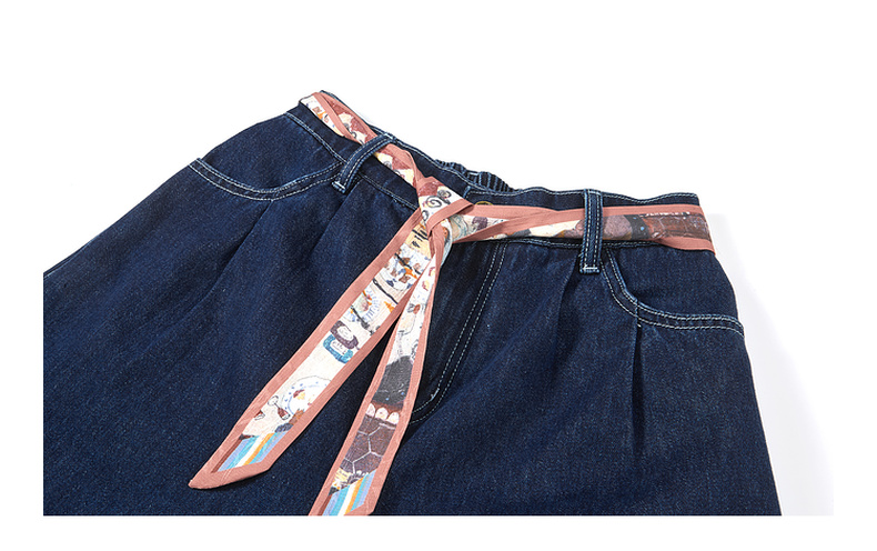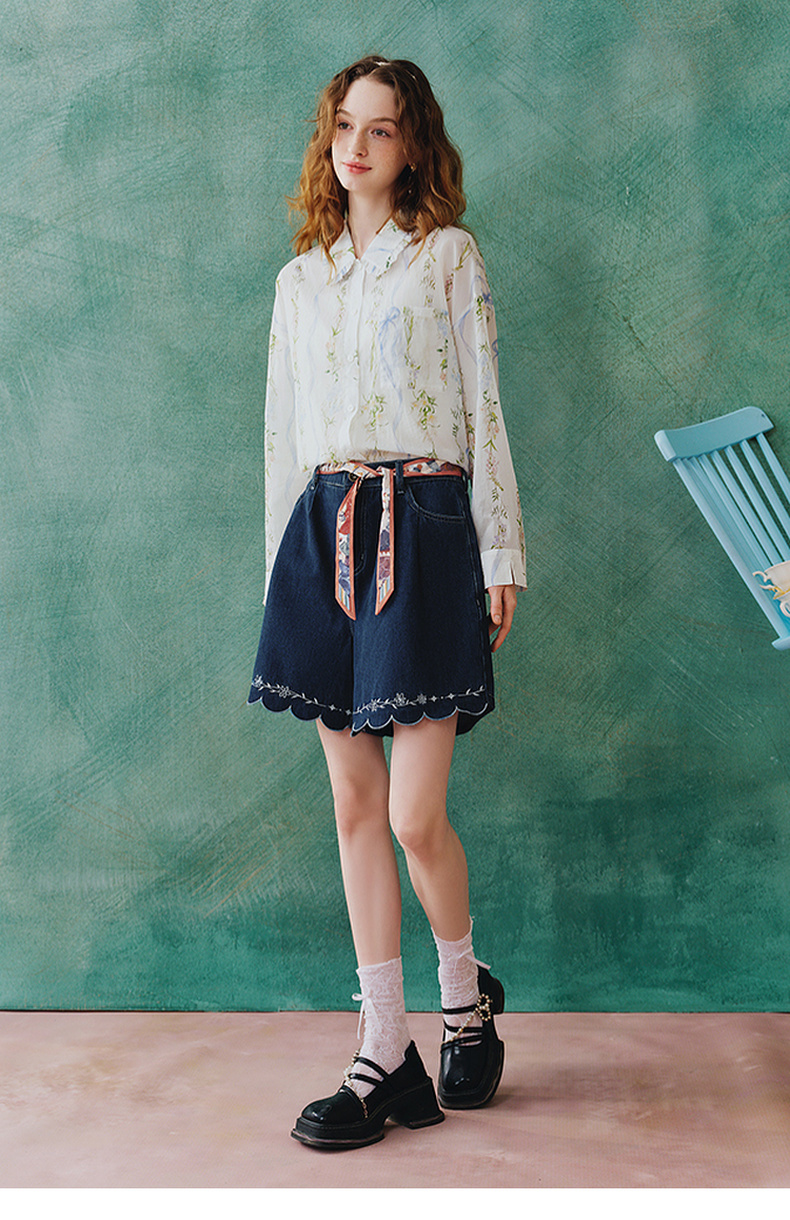 两三事 萤火岛屿 2025夏季新款休闲绣花波浪边裤脚绑带牛仔裤女