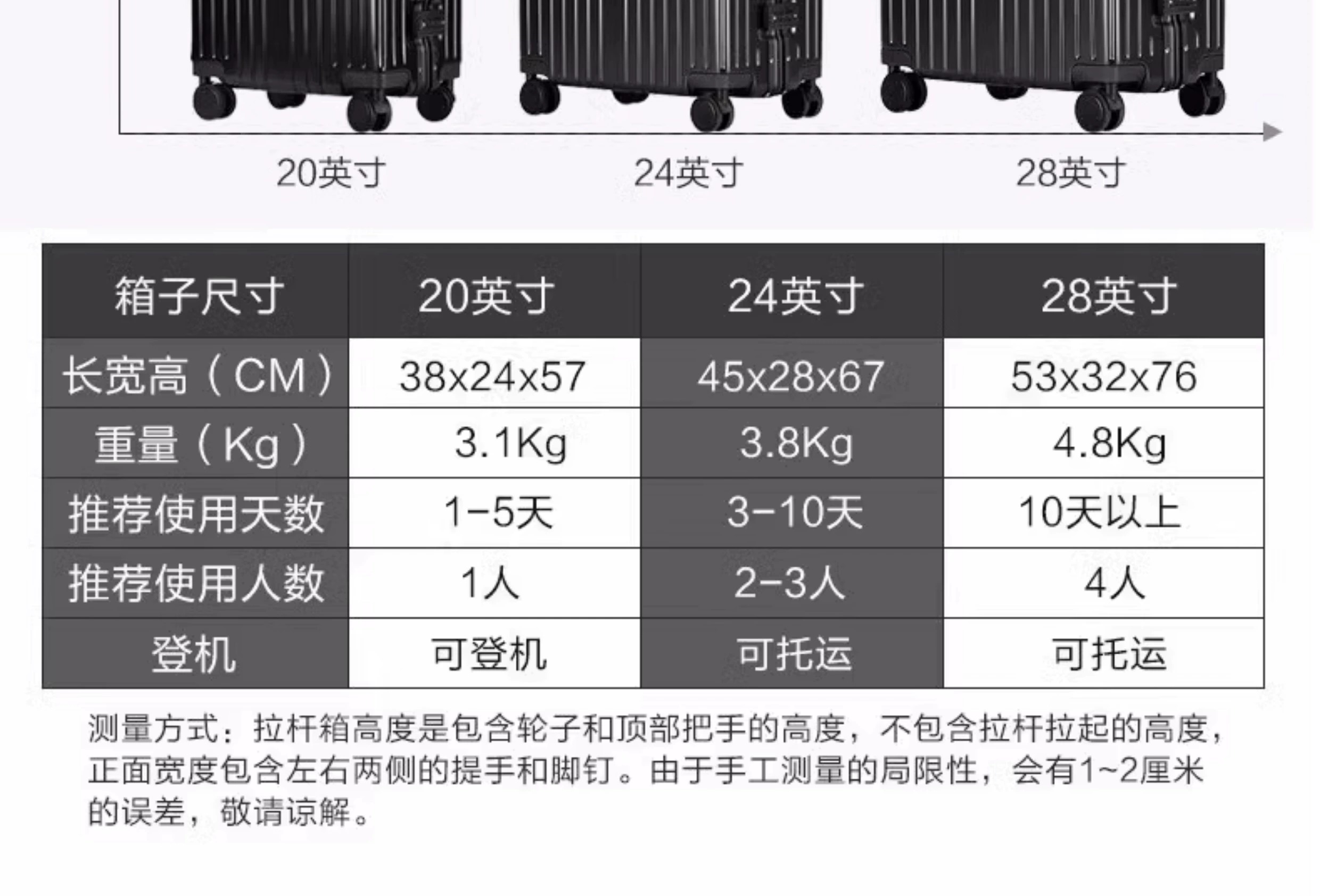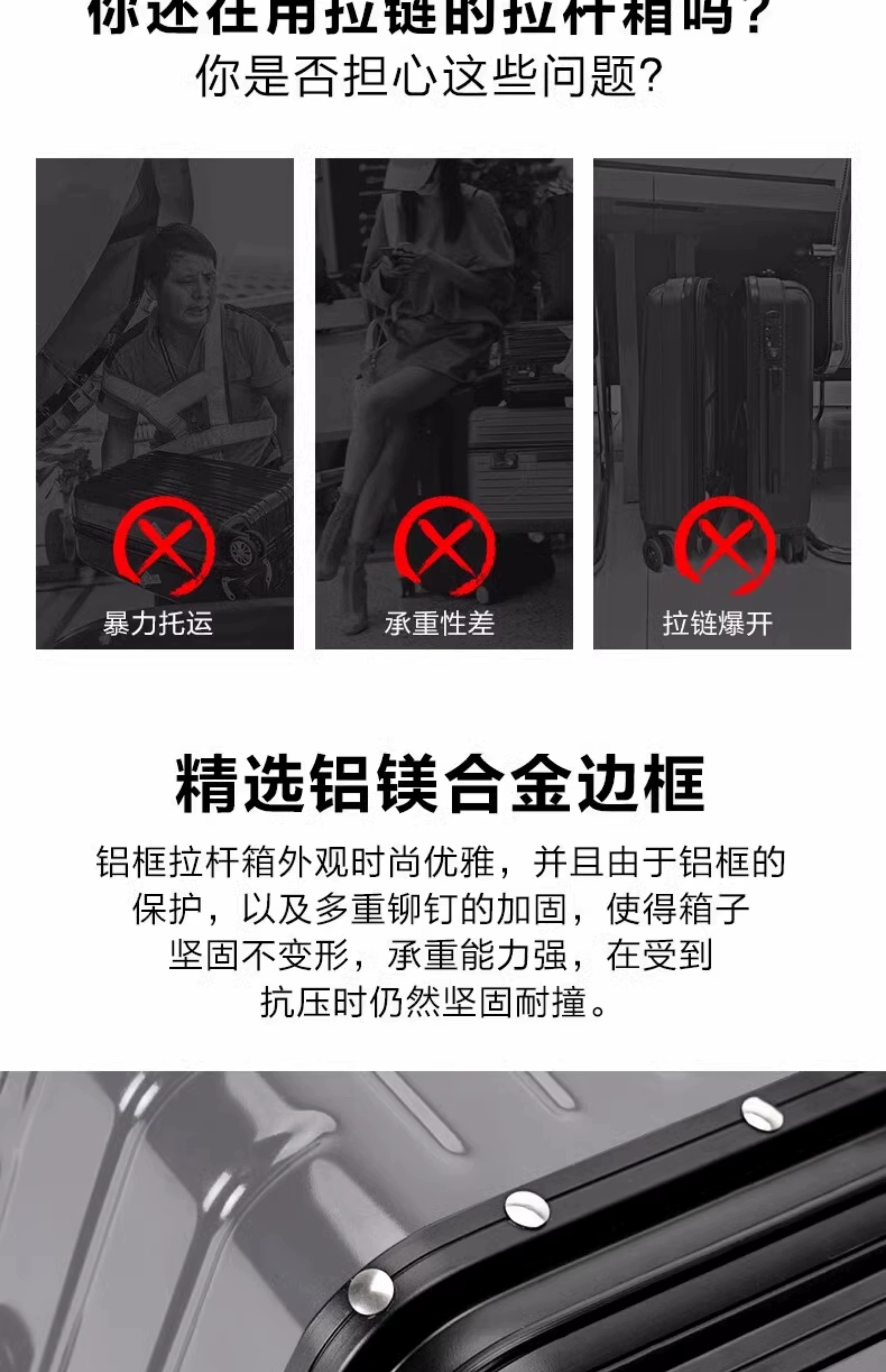 【出口国际级行李箱】360°静音万向轮 航空级铝合金边框 抗摔、耐用、不易变形 多色多尺寸