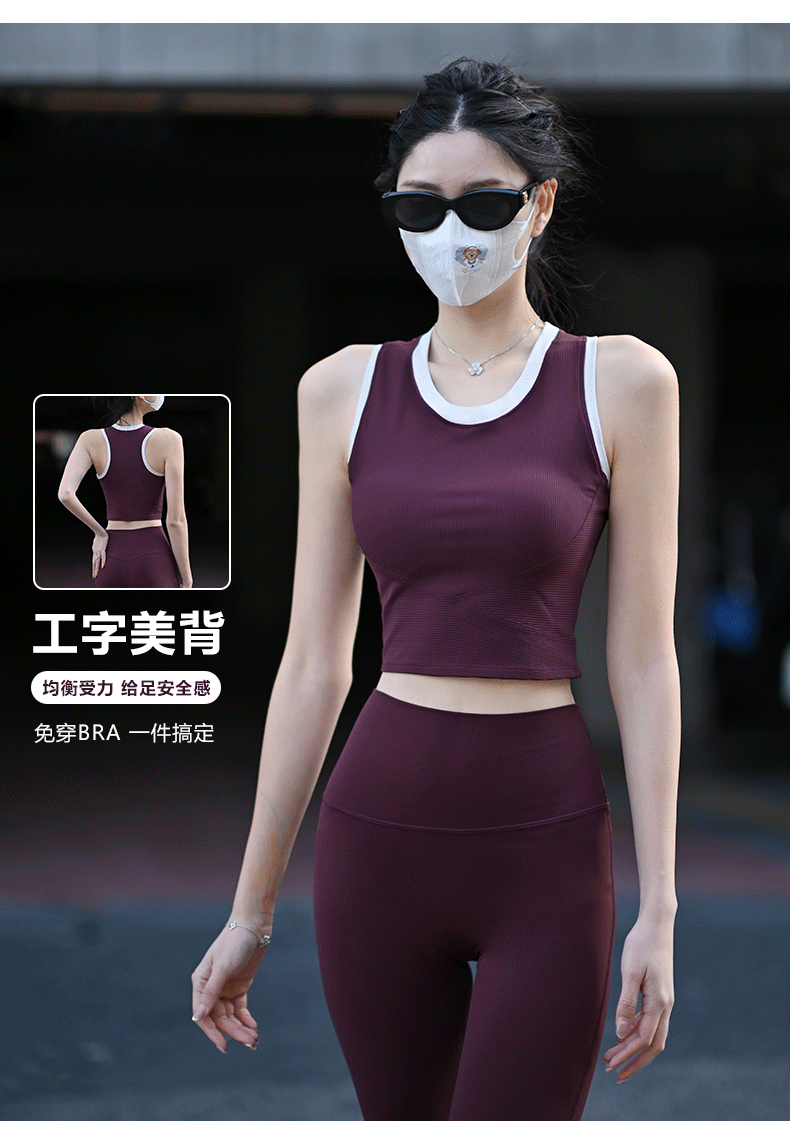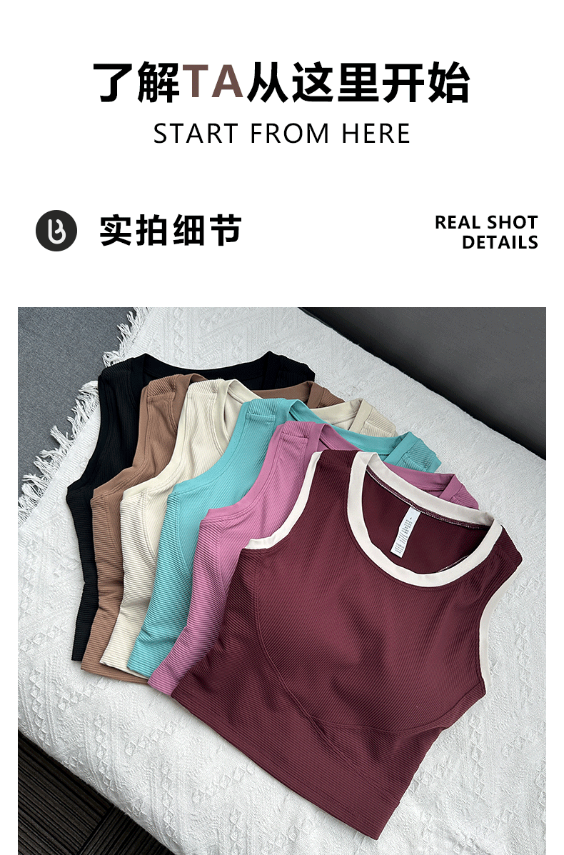 beemen新升级一体式胸垫 低强度舒适背心 裸感亲肤面料 透气排汗 不冰凉 运动日常可穿