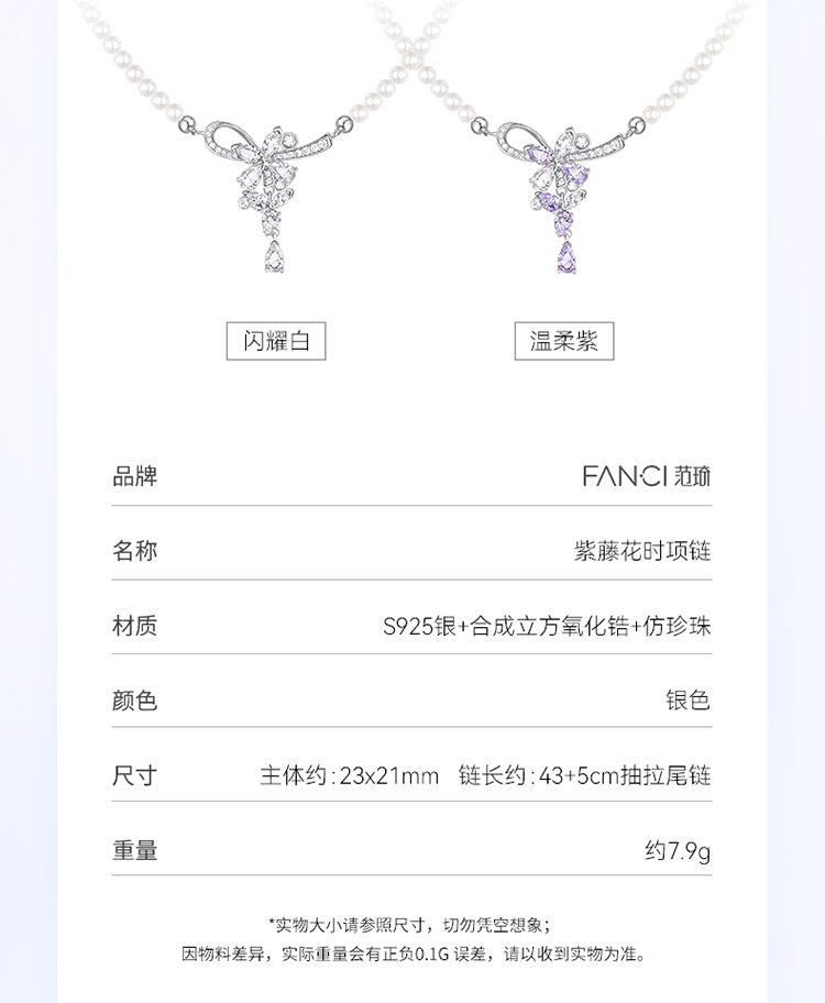Fanci范琦 紫藤花时项链 紫藤花系列 925银饰轻奢生日礼物 下单赠精美礼盒 顺丰空运+运费险
