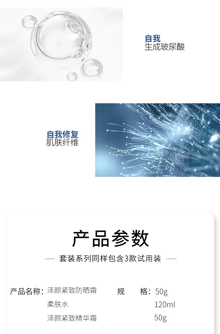 护花呤泽颜三件套(泽颜紧致精华霜+柔肤水+泽颜防晒霜) 提拉紧致(原逆时多效套装,蓝套)