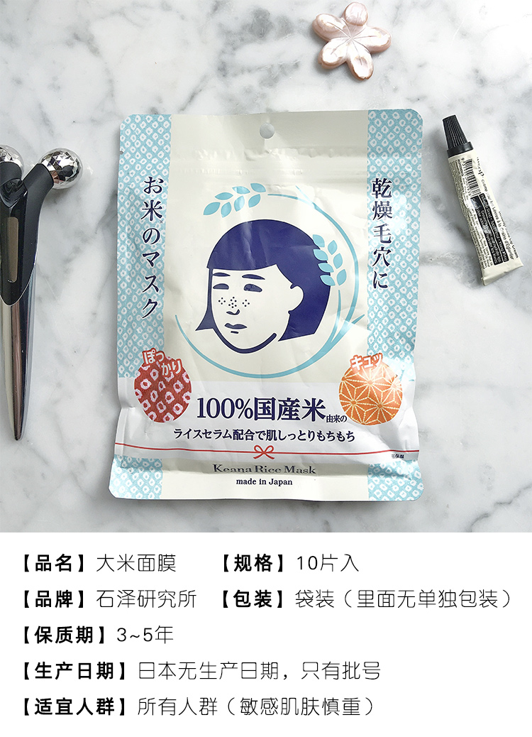 日本直邮 石泽研究所毛孔抚子大米面膜10片
